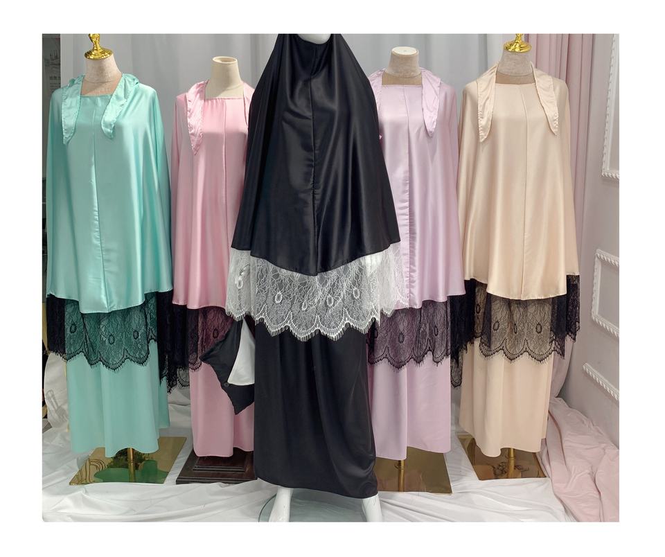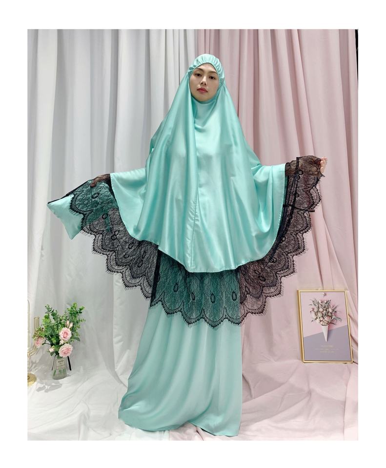 ชุดเดรสมุสลิมของผู้หญิง,ชุดคลุมฮิญาบผ้าลูกไม้อาบายา2ชิ้นมุสลิม Khimar อิสลามชุดคลุมฮิญาบ2023