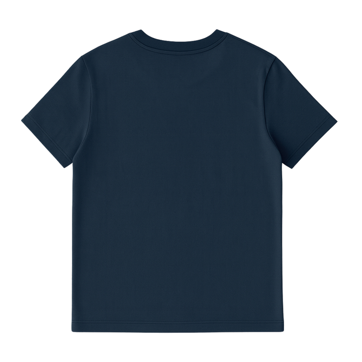 เสื้อยืดคอกลมแขนสั้นสีน้ำเงินกรมท่าสำหรับผู้หญิง ผ้าฝ้ายออร์แกนิคคุณภาพสูง 100% ผ่านการซักล่วงหน้า ได้รับการรับรองมาตรฐาน GOTS เนื้อผ้านุ่ม ระบายอากาศได้ดี