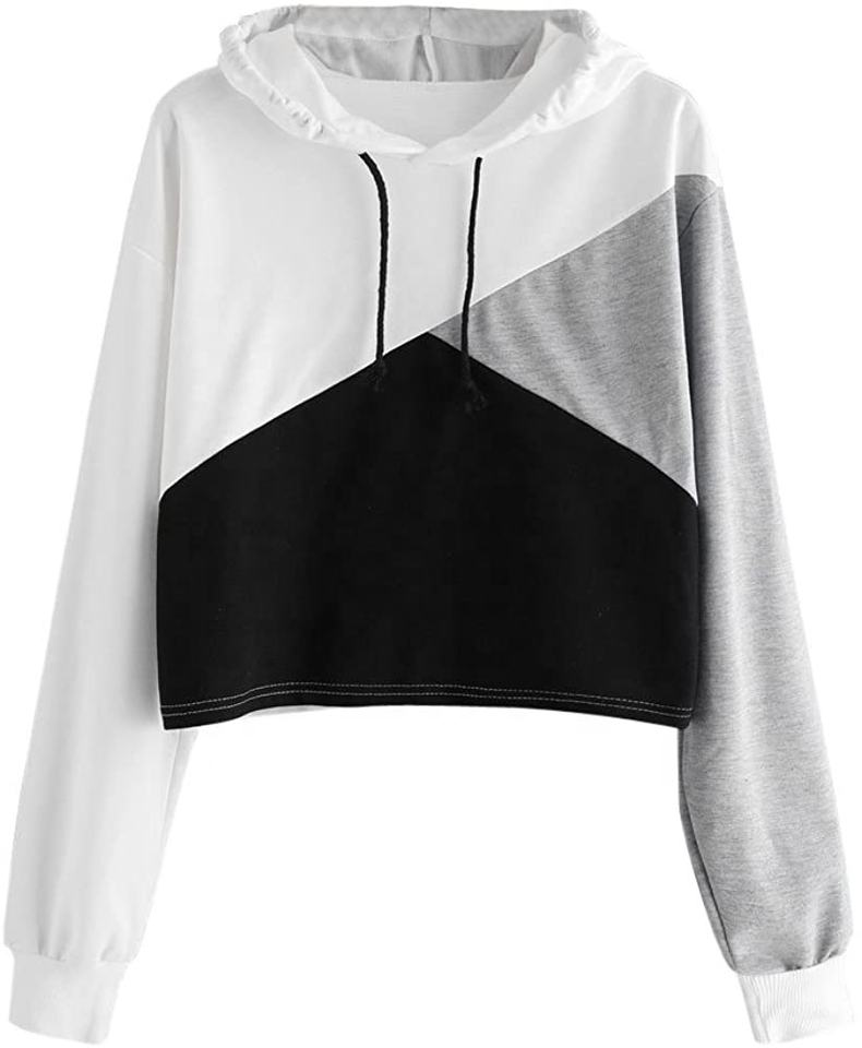 เสื้อครอปมีฮู้ดแบบลำลองสำหรับผู้หญิงเสื้อครอปแขนสั้นมีฮู้ดคอปกสีเสื้อสเวตเชิ้ตสตรีทแวร์พอดีตัวสำหรับฤดูหนาวมาใหม่