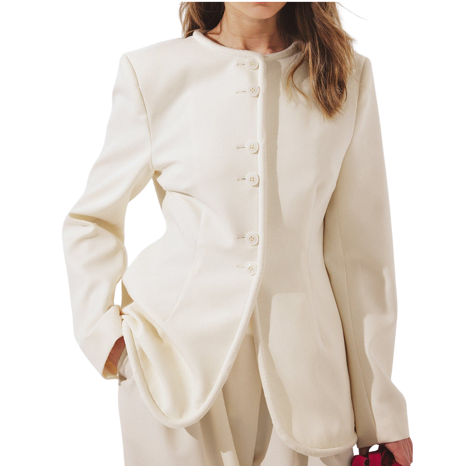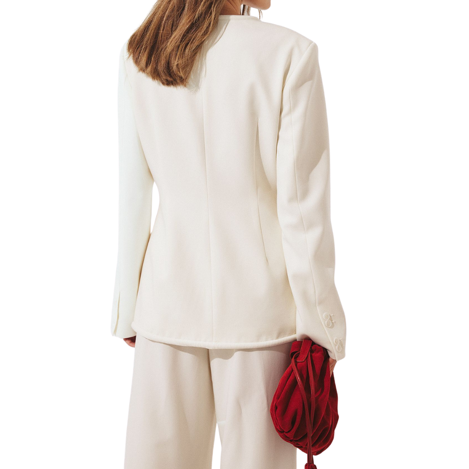 เสื้อเบลเซอร์ผู้หญิง ปกคอวี ติดกระดุมด้านหน้า ผ้าโพลีเอสเตอร์ผสมวิสโคส ระบายอากาศได้ดี ไม่ยับง่าย แขนยาว ดีไซน์หรูหรา