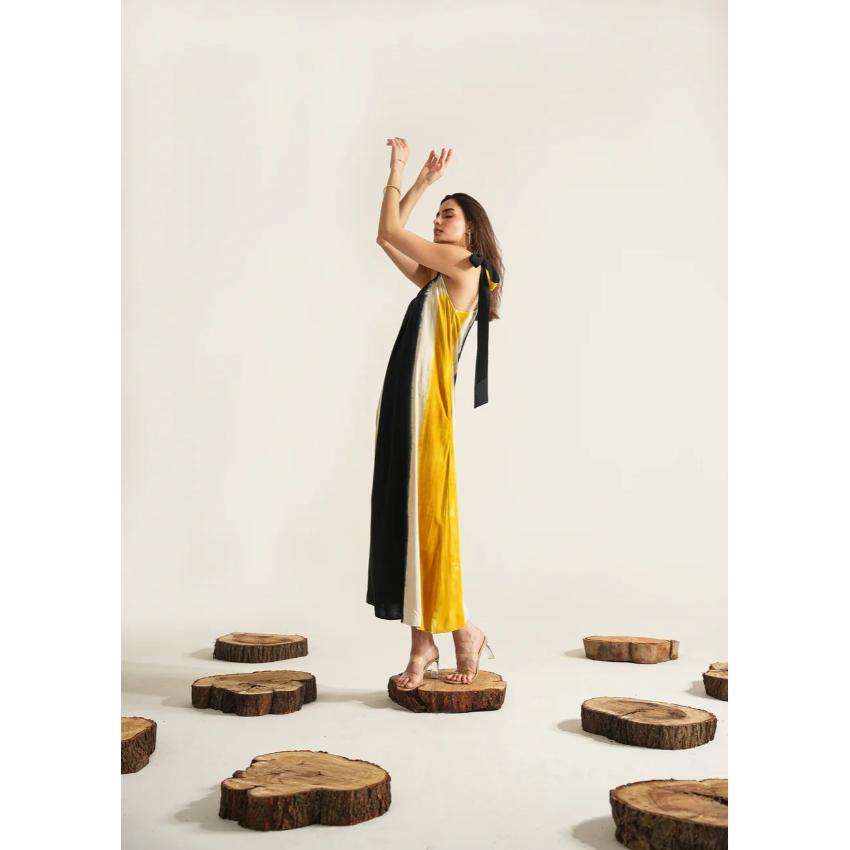 ชุดเดรสยาวคลุมเท้าแบบไหล่เดียว แขนกุด ตัดสี แต่งระบายช่วงเอว ดีไซน์หรูหรา สวมใส่สบาย เหมาะสำหรับงานปาร์ตี้