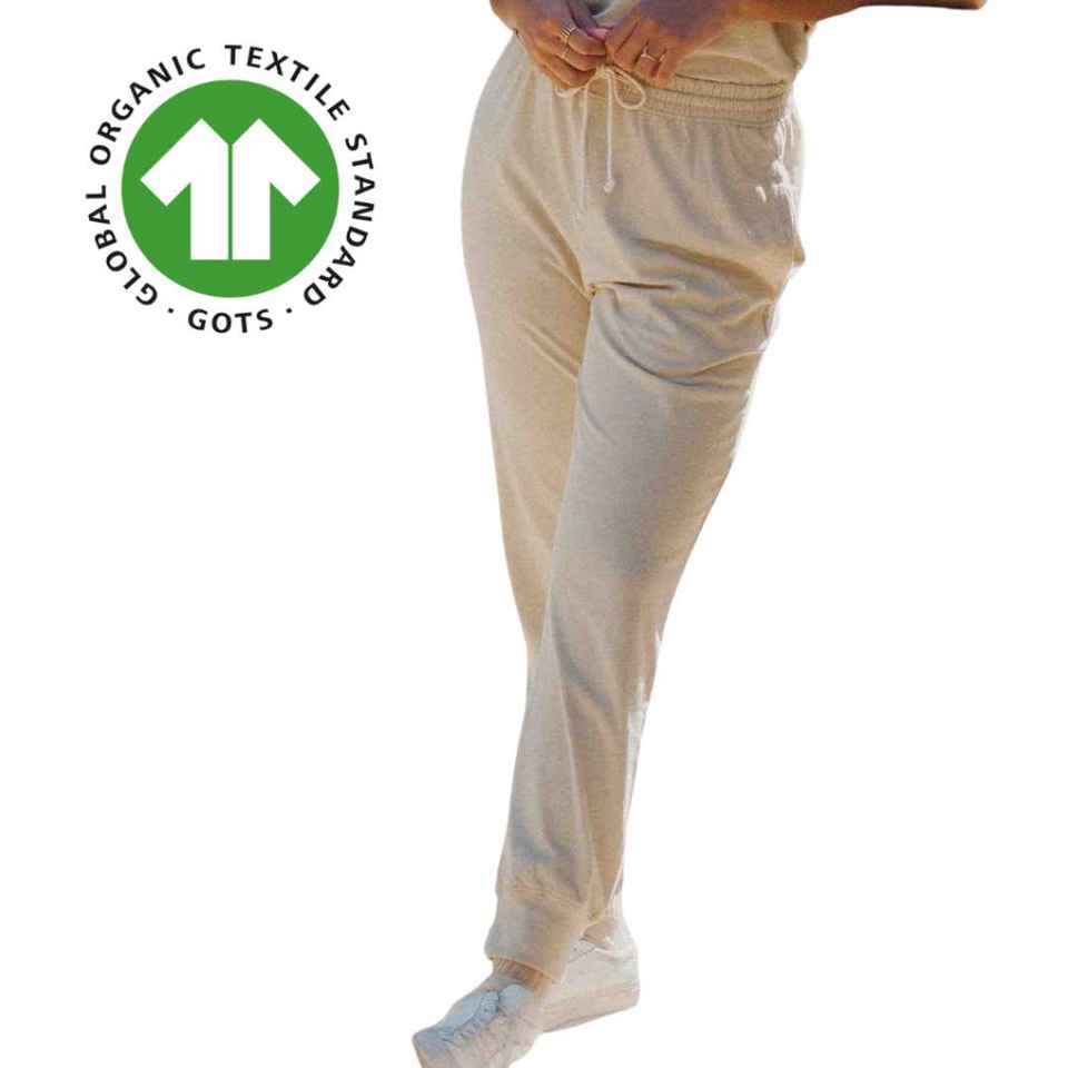 กางเกงวิ่งขายาวผ้าคอตตอนออร์แกนิกสำหรับผู้หญิงกางเกงป้องกันริ้วรอยเสื้อเจอร์ซีย์ธรรมชาติ5.4ออนซ์ระบายอากาศพร้อมสายรัดเอวยืด
