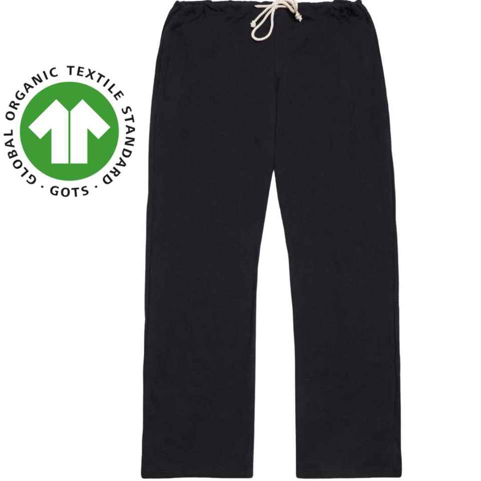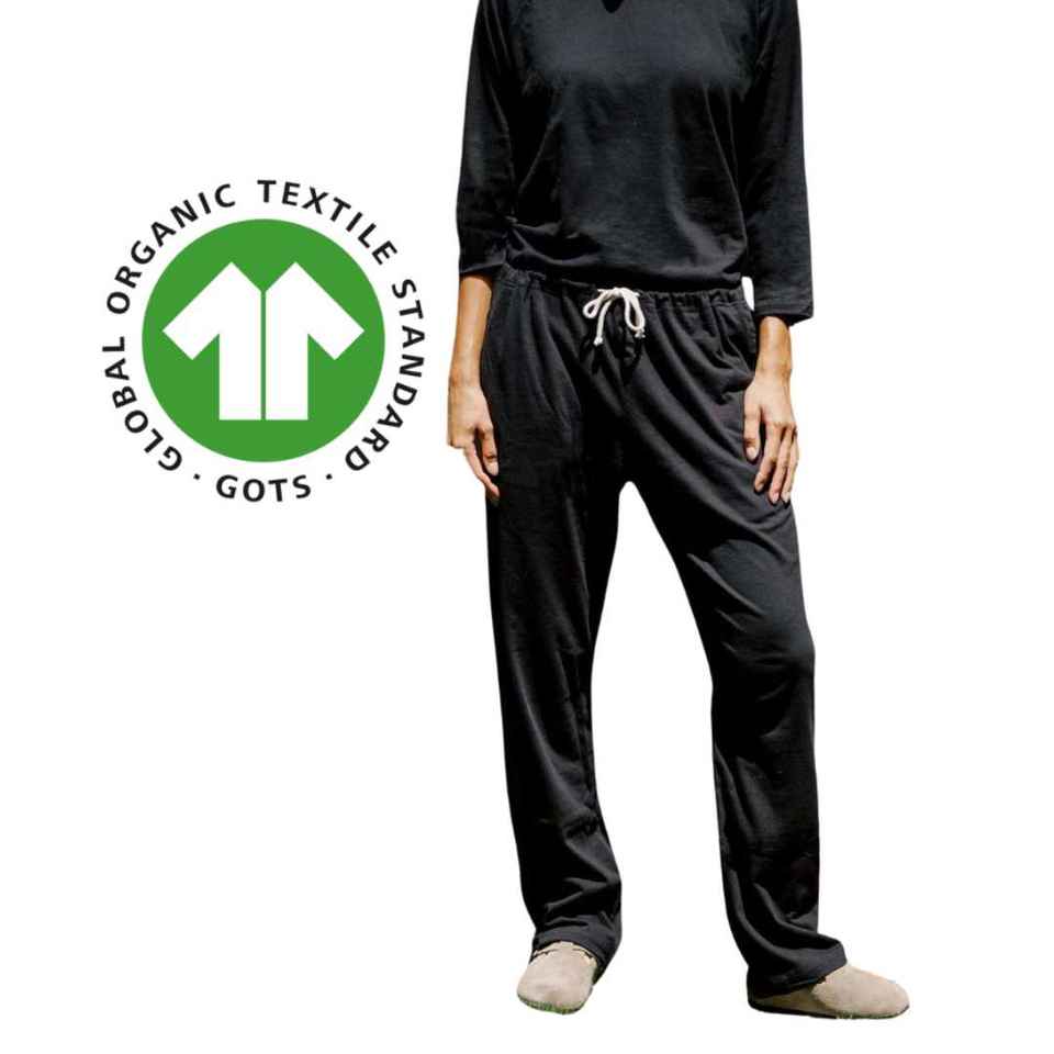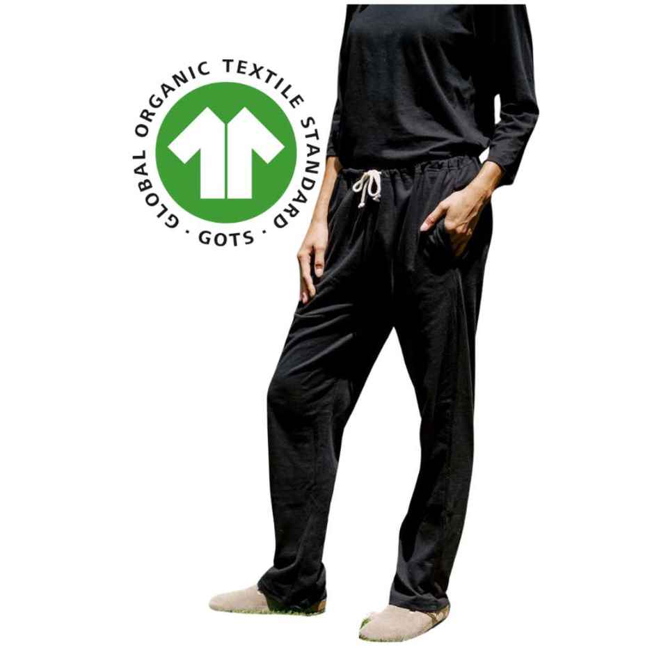 กางเกงเลานจ์ผ้าฝ้ายออแกนิกสำหรับผู้หญิงเสื้อเจอร์ซีย์สีดำขนาด5.4ออนซ์ใส่สบายพร้อมเชือกดึงเอวและดีไซน์ขาตรง