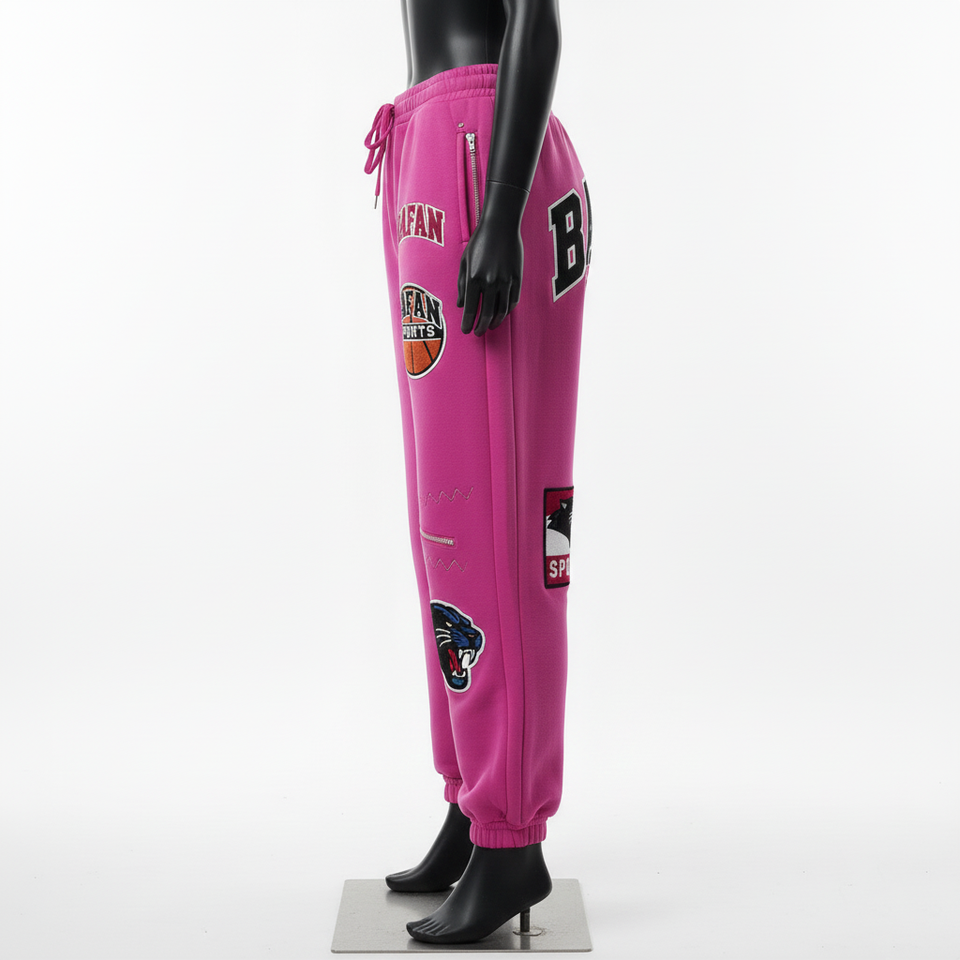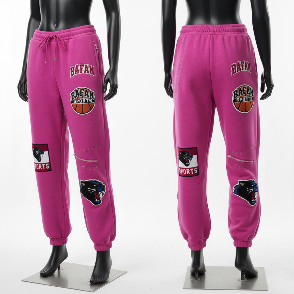 กางเกงขายาวทรงหลวมโอเวอร์ไซส์สำหรับผู้หญิง ผ้าฝ้ายพรีเมียมเนื้อนุ่ม สีชมพูอ่อน ปักลายเชนิลล์แบบกำหนดเอง สไตล์สตรีทแวร์ มีจำหน่าย