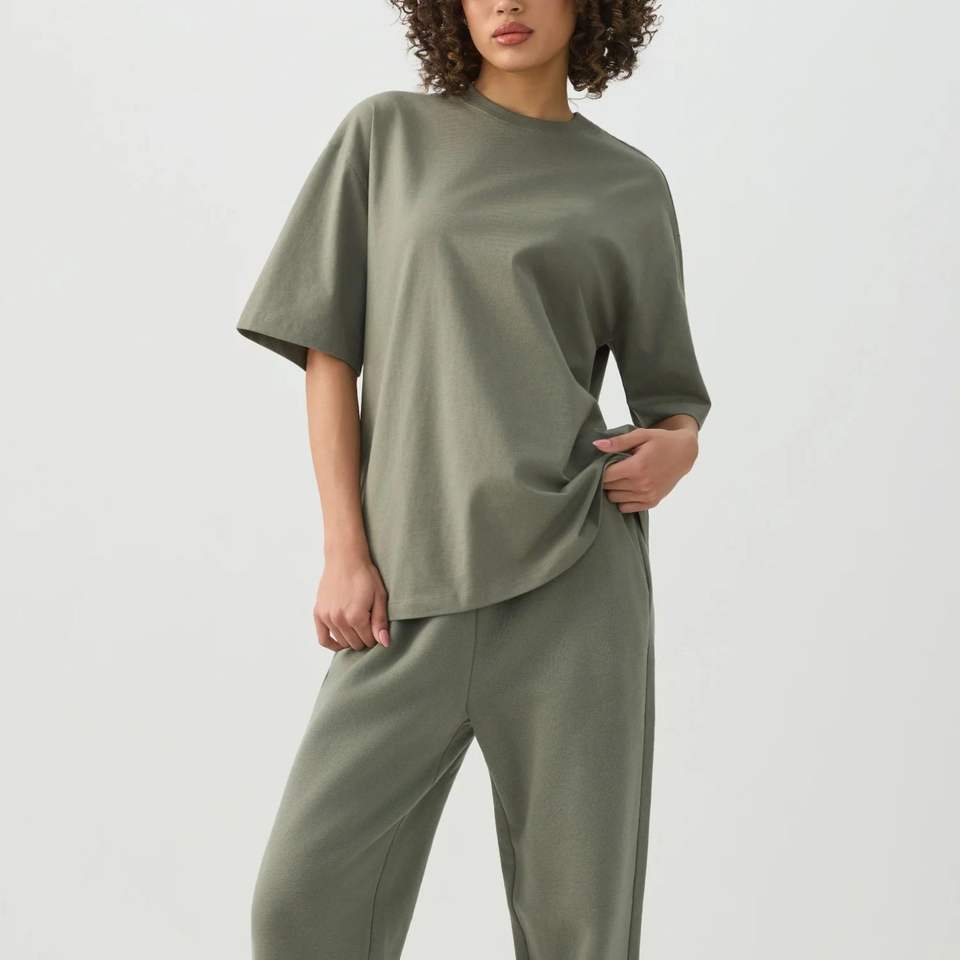 ชุดลำลองผู้หญิงไซส์ใหญ่ 2 ชิ้น เสื้อยืดผ้าฝ้ายและกางเกงจ็อกเกอร์ ชุดวอร์ม สกรีนโลโก้ได้ ขายส่ง