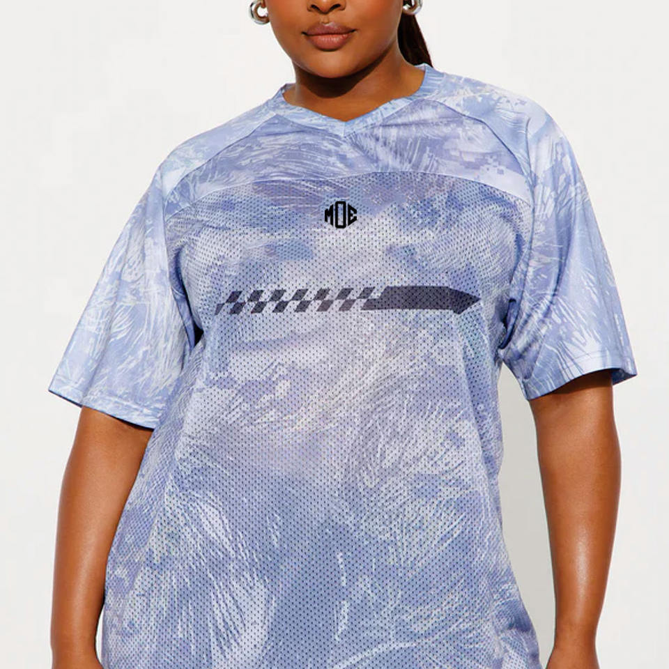 เสื้อเจอร์ซีย์อเมริกันฟุตบอลผู้หญิงไซส์ใหญ่ คอวี แขนสั้น ผ้าตาข่าย พิมพ์ลายตามสั่ง สตรีทแวร์ รับผลิตแบบ OEM แบรนด์ส่วนตัว ขายส่ง