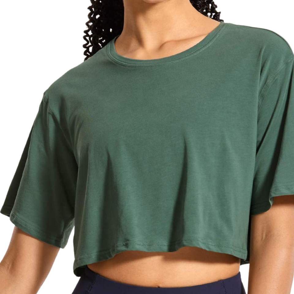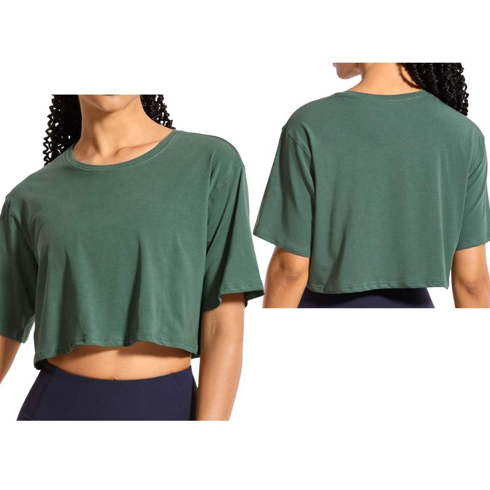 เสื้อยืดโอเวอร์ไซส์ทรงครอป แขนสั้น ทรงปกติ ผ้าถัก ปรับแต่งได้ เหมาะสำหรับออกกำลังกาย โยคะ ลำลอง สตรีทแวร์ ขายส่ง รับผลิตแบบ OEM