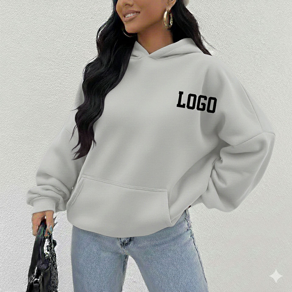 เสื้อฮู้ดดี้ผู้หญิงไซส์ใหญ่ คุณภาพสูง บริการ OEM ผ้าฟลีซนุ่ม สวมใส่สบาย ทรงหลวม เหมาะสำหรับฤดูหนาว