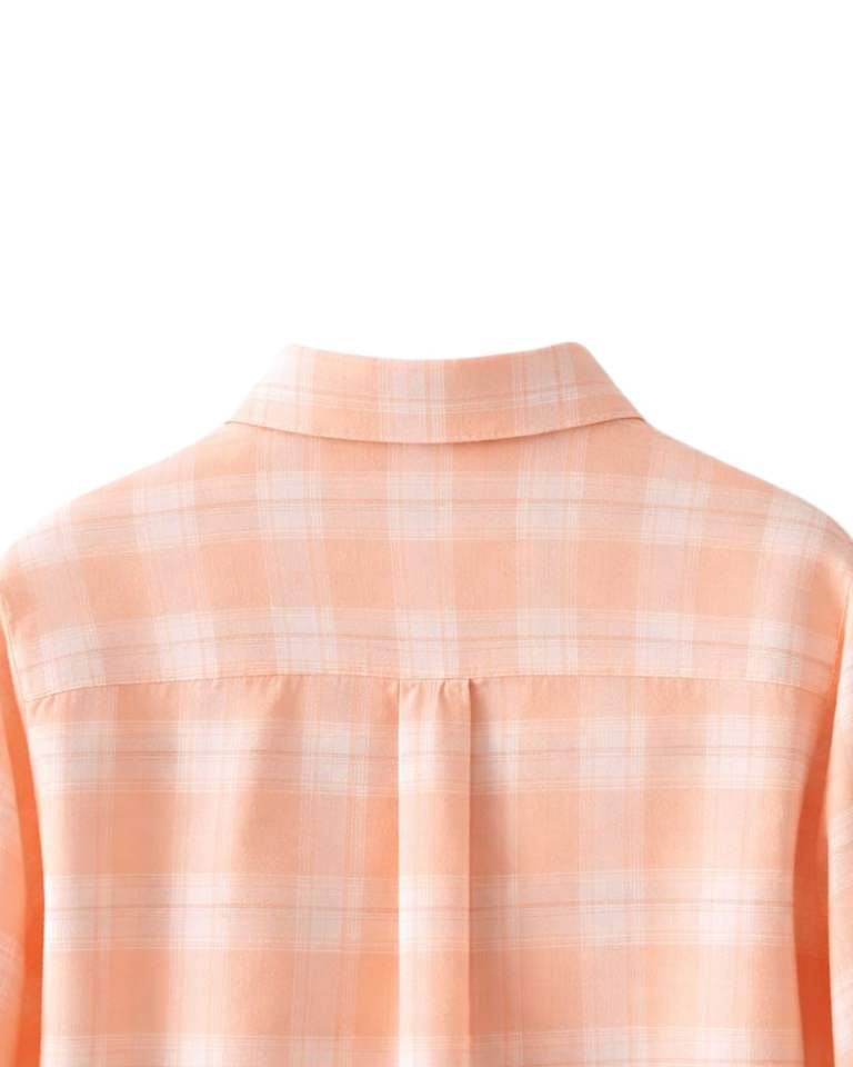 เสื้อเชิ้ตผู้หญิงลายสก็อตตัวใหญ่ แขนยาว สีพีช สไตล์ลำลอง ผ้าแฟลนเนล ลายตาราง ทูนิคเนื้อนุ่ม สำหรับฤดูใบไม้ร่วงและฤดูหนาว ขายส่ง