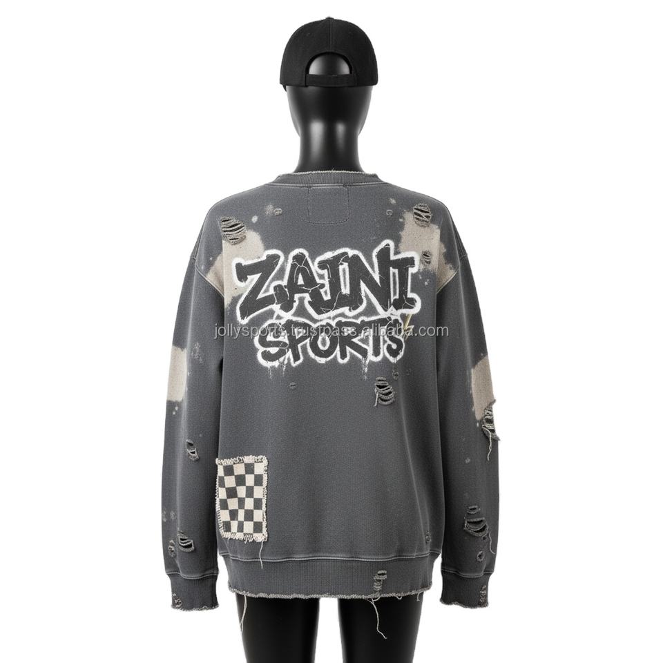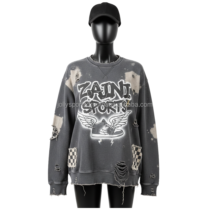 เสื้อสเวตเตอร์โอเวอร์ไซส์สำหรับผู้หญิงเสื้อสเวตเตอร์ระบายอากาศได้ดีพิมพ์โลโก้แบบกำหนดเองสไตล์วินเทจผ้าฝ้ายฟอกสี