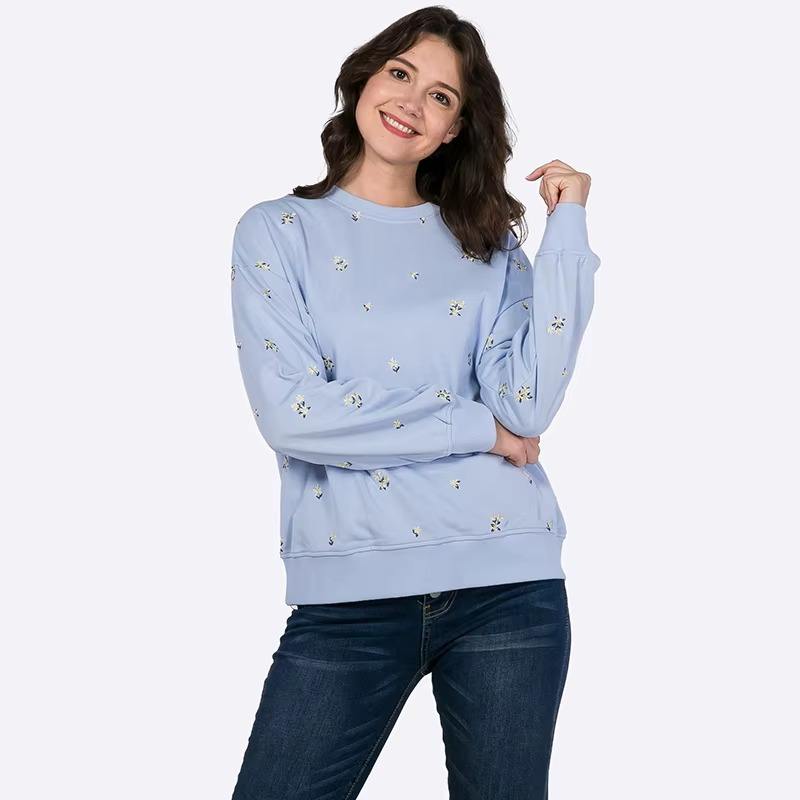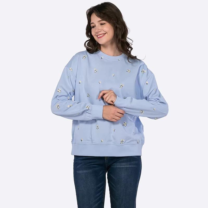 เสื้อสเวตเชิ้ตผู้หญิงทรงโอเวอร์ไซส์ ผลิตจากผ้าผสมคอตตอน 100% ให้ความอบอุ่น พร้อมโลโก้ด้านหน้า ทรงหลวม สวมใส่สบาย เหมาะสำหรับฤดูใบไม้ร่วง/ฤดูหนาว