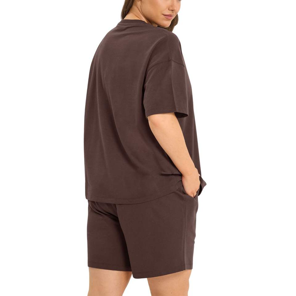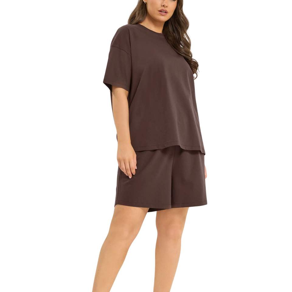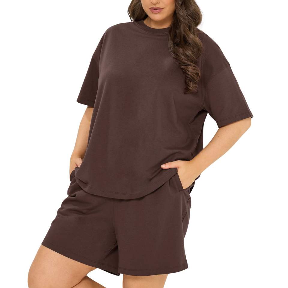 ชุดเสื้อยืดโอเวอร์ไซส์และกางเกงขาสั้นสำหรับผู้หญิง ผ้าฝ้าย ชุดลำลองสองชิ้น ชุดลำลองฤดูร้อน ขายส่ง OEM
