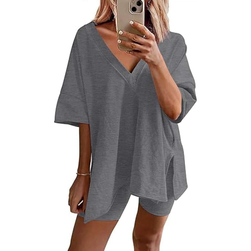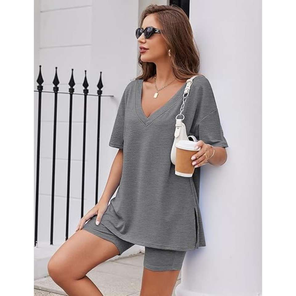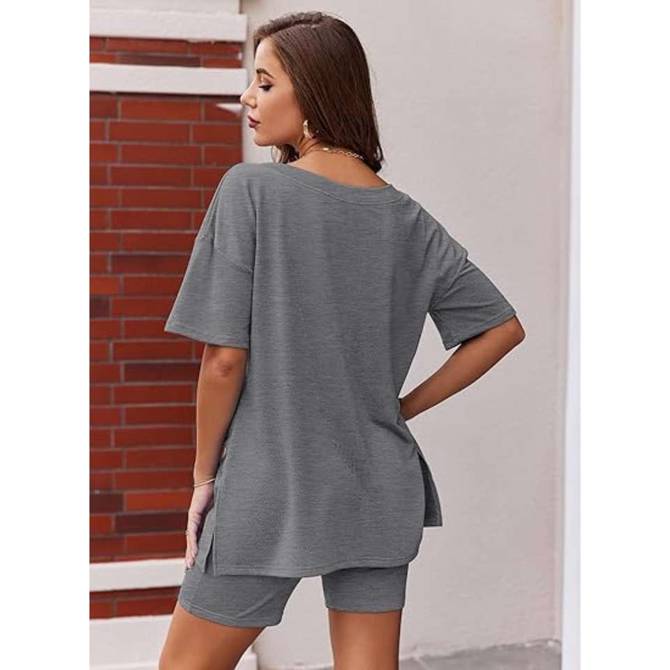 ชุดเสื้อและกางเกงขาสั้นขนาดใหญ่สำหรับผู้หญิงชุดสองชิ้นสำหรับตลาดแฟชั่นขายส่งและขายปลีกสำหรับยิมและบ้าน