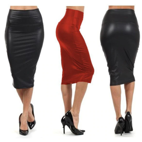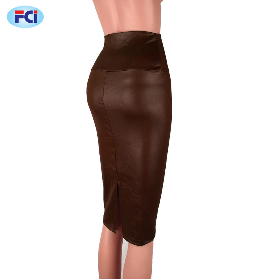 กระโปรงยาวหนัง PU ของผู้หญิง,กระโปรงทรงดินสอเอวสูงสีพื้นแนววินเทจเซ็กซี่ Clubwear