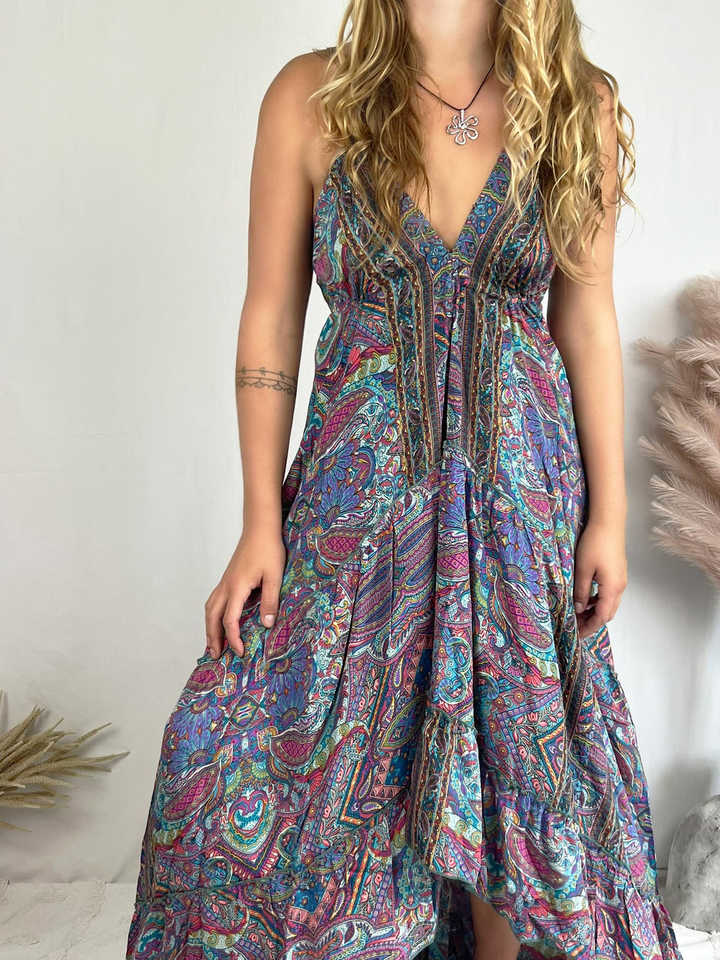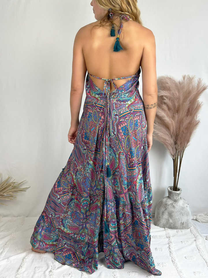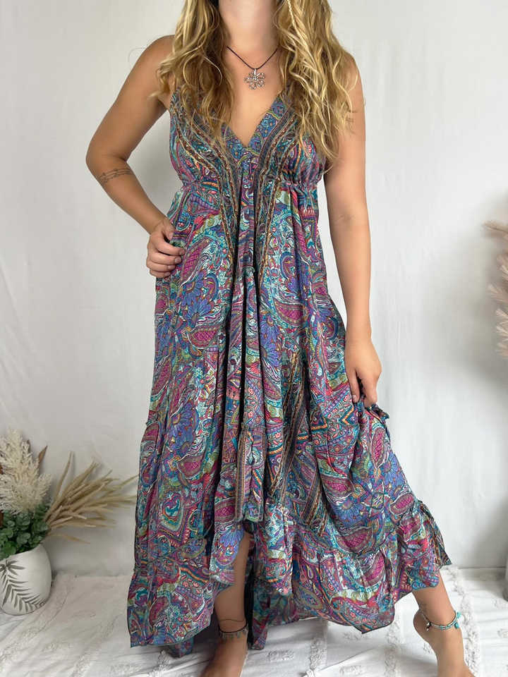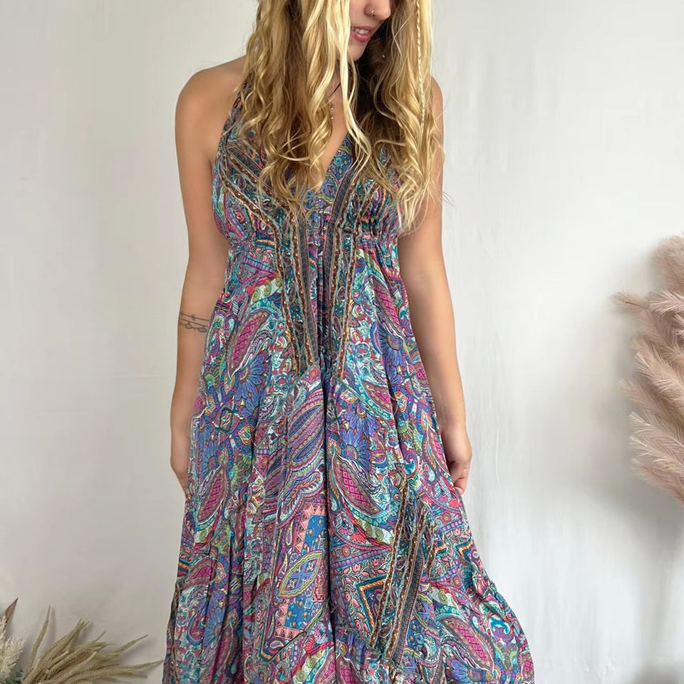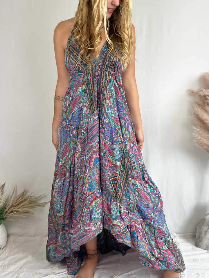 Women Party Women Sexy Deep V Neck Backless Tropical Vacation Beach Maxi Dress Long Women Fashion Solid Sleeveless Dresses
