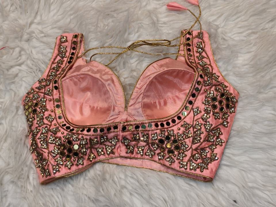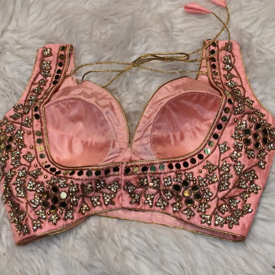 เสื้อผู้หญิงสีชมพูสำหรับเจ้าสาว ดีไซน์เนอร์ออกแบบ ประดับด้วยกระจกเซอร์คอนแท้ งานปักมือประณีต