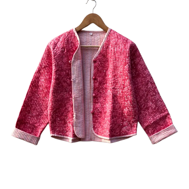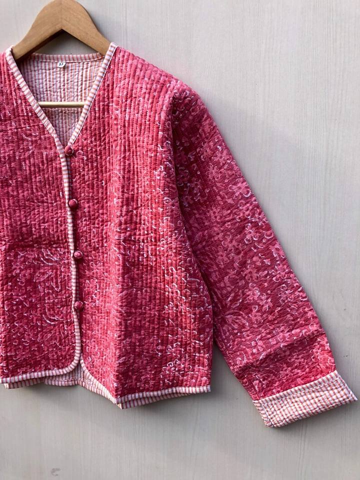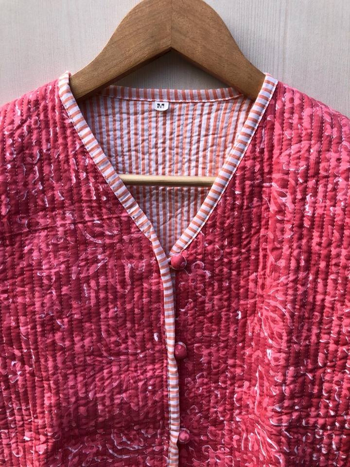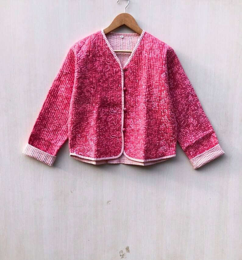 Women Pink Floral Cotton Quilted Kimono Jacket Hand Block Print Coat Bulk Export for Best Price