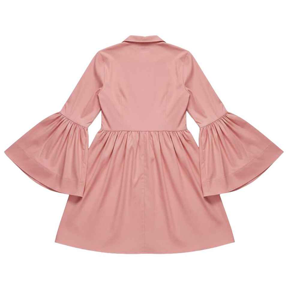 ชุดเดรสผ้าป๊อปลินสีชมพูสำหรับผู้หญิง แขนยาวทรงระฆัง ชายกระโปรงบาน สไตล์ลำลองเก๋ไก๋ แฟชั่นบูติก ชุดออกงานปาร์ตี้