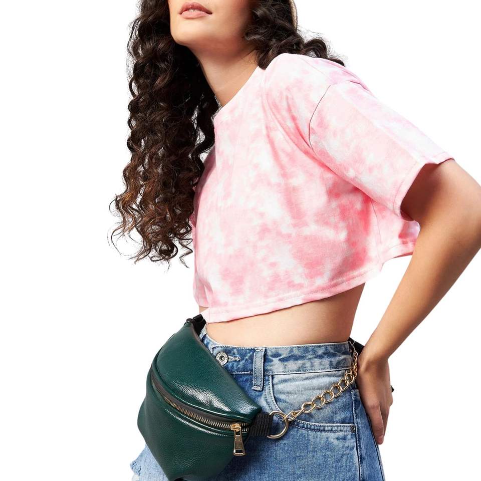 เสื้อครอปท็อปผู้หญิงสีชมพู ลายมัดย้อม แขนสั้นทรงโอเวอร์ไซส์ เสื้อยืดครอปแฟชั่นฤดูร้อน สตรีทแวร์ รับผลิตตามสั่ง ขายส่ง