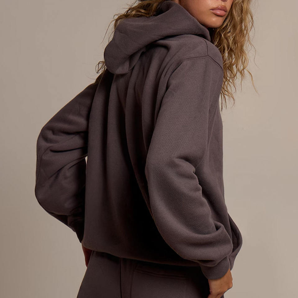เสื้อฮู้ดผู้หญิงผ้าฟลีซเรียบ 100% ผ้าฝ้าย ทรงหลวม สวมใส่สบาย เหมาะสำหรับฤดูหนาว รับสกรีนโลโก้ ปัก 3 มิติ
