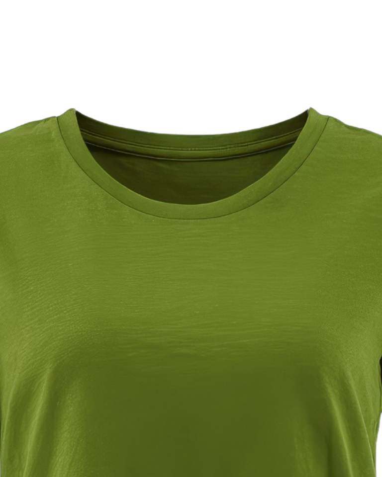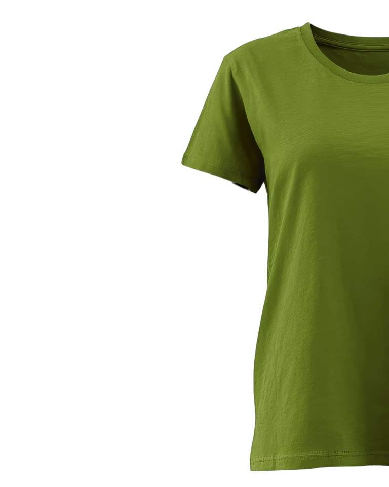 เสื้อยืดผ้าฝ้ายสีเขียวมะกอกสำหรับผู้หญิงเสื้อยืดแขนสั้นคอกลมแบบคลาสสิกเสื้อยืดผ้านุ่มระบายอากาศได้ดีเสื้อลำลองออกแบบโลโก้ได้ตามต้องการ