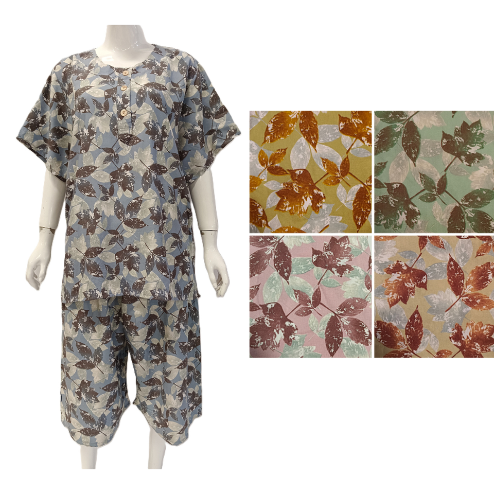 ชุดนอนผู้หญิงขนาดใหญ่ชุดเดียวแขนสั้นและกางเกงยาวถึงเข่า