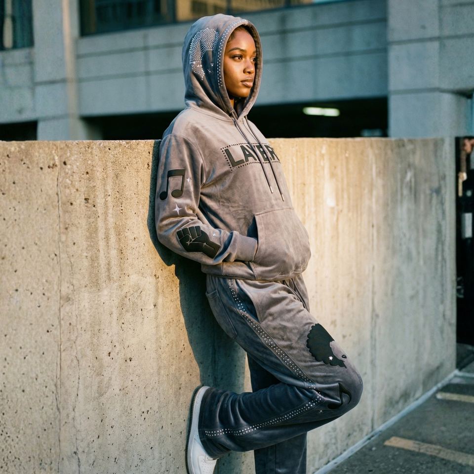 ชุดเซ็ทลำลองผู้หญิงไซส์ใหญ่ ลายพิมพ์ ประดับคริสตัล เสื้อฮู้ด กางเกงขายาว สตรีทแวร์ ผ้าเนื้อปานกลาง ชุดสองชิ้น รับผลิตตามสั่ง ขายส่งจำนวนมาก