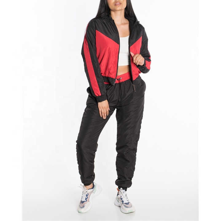 ชุดวอร์มผู้หญิงไซส์ใหญ่ ลายพิมพ์ แจ็คเก็ตกันลม สีตัดกัน สำหรับฤดูหนาว เนื้อผ้าเบา ระบายอากาศได้ดี ไนลอน 100% ยืดได้สี่ทิศทาง