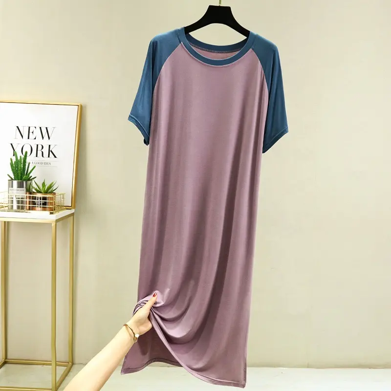 Women Plus Size Solid Color Dress Round Neck Vietnam Mid Sleeve Dress Large Swing Plus Size Women's Dresses