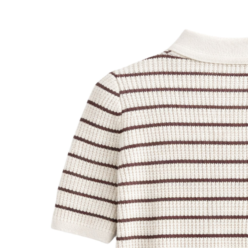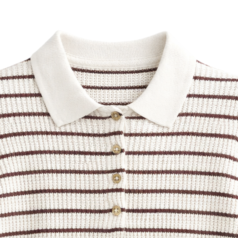 เสื้อโปโลผู้หญิงถักลายทางแบบ Pointelle แขนสั้น ติดกระดุมด้านหน้า สไตล์ลำลองสำหรับฤดูร้อน ระบายอากาศได้ดี มีเท็กซ์เจอร์ แฟชั่นเสื้อพูลโอเวอร์