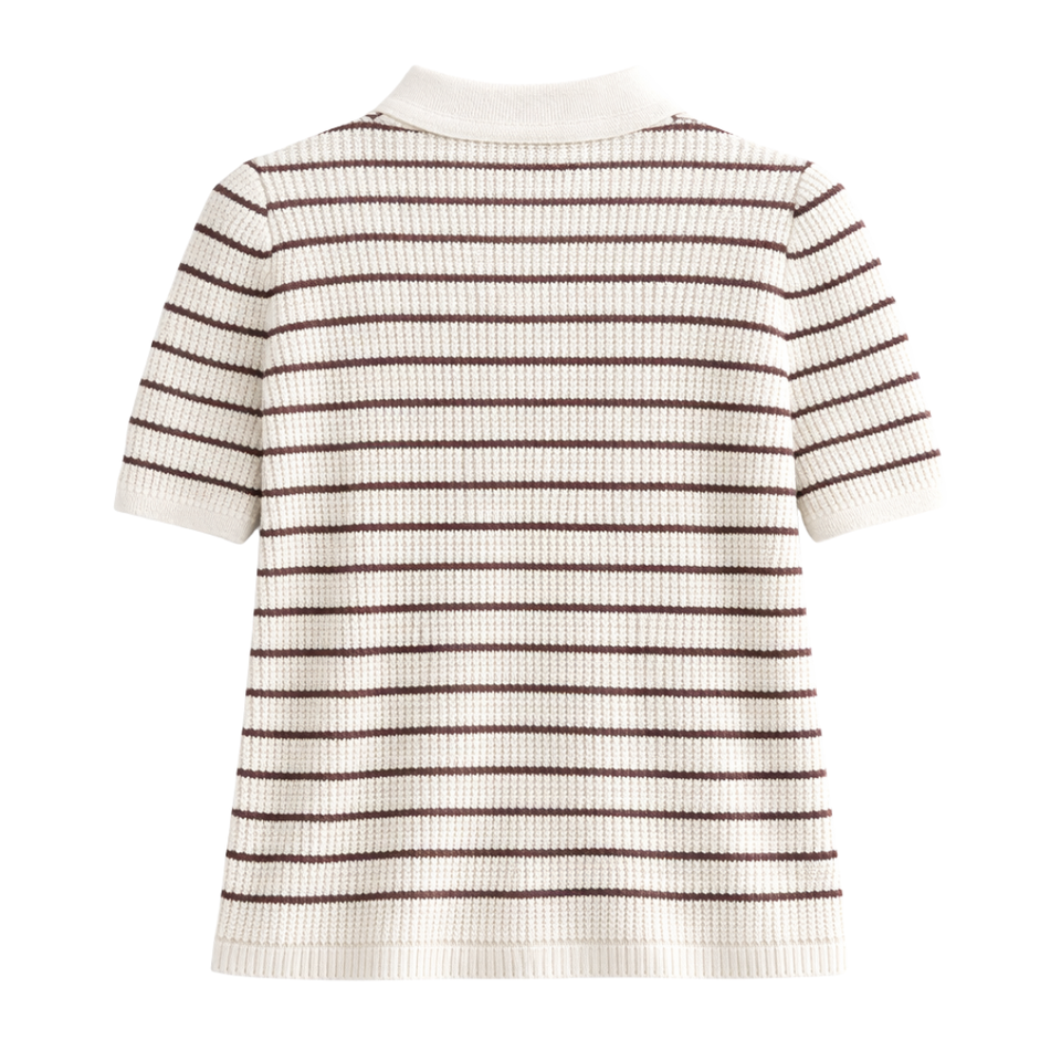เสื้อโปโลผู้หญิงถักลายทางแบบ Pointelle แขนสั้น ติดกระดุมด้านหน้า สไตล์ลำลองสำหรับฤดูร้อน ระบายอากาศได้ดี มีเท็กซ์เจอร์ แฟชั่นเสื้อพูลโอเวอร์