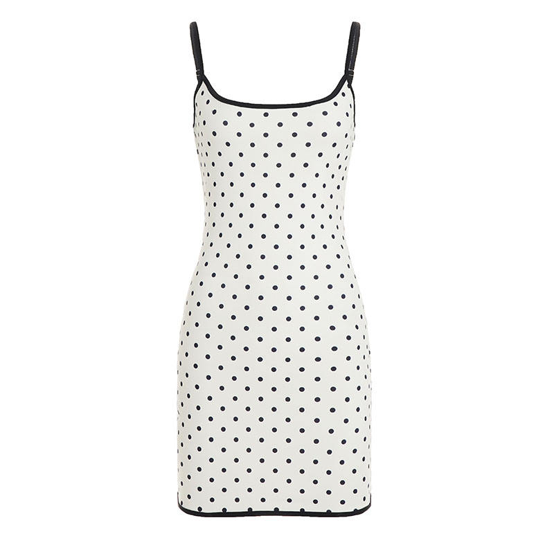 ชุดเดรสสายเดี่ยวลายจุดสำหรับผู้หญิง ทรงเข้ารูป แขนกุด ชุดมินิเดรสสำหรับฤดูร้อน สวมใส่สบายๆ และงานปาร์ตี้