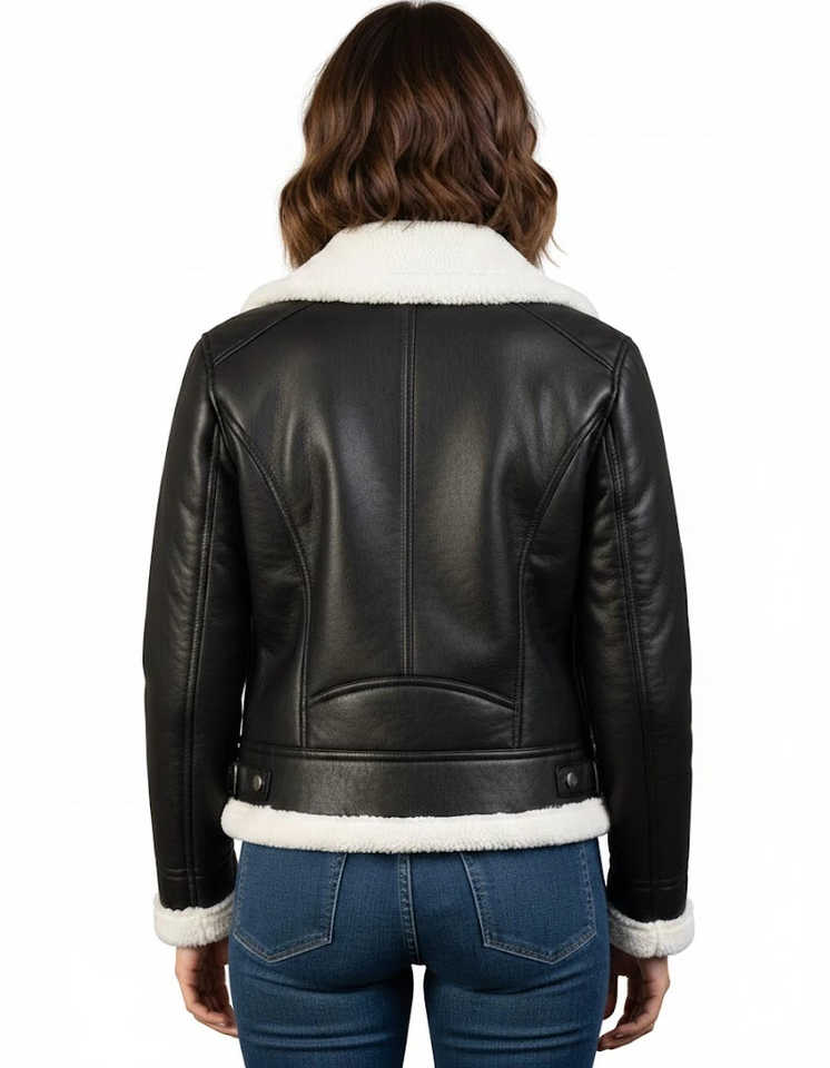 เสื้อแจ็กเก็ตหนังแกะแท้เกรดพรีเมียมสำหรับผู้หญิง