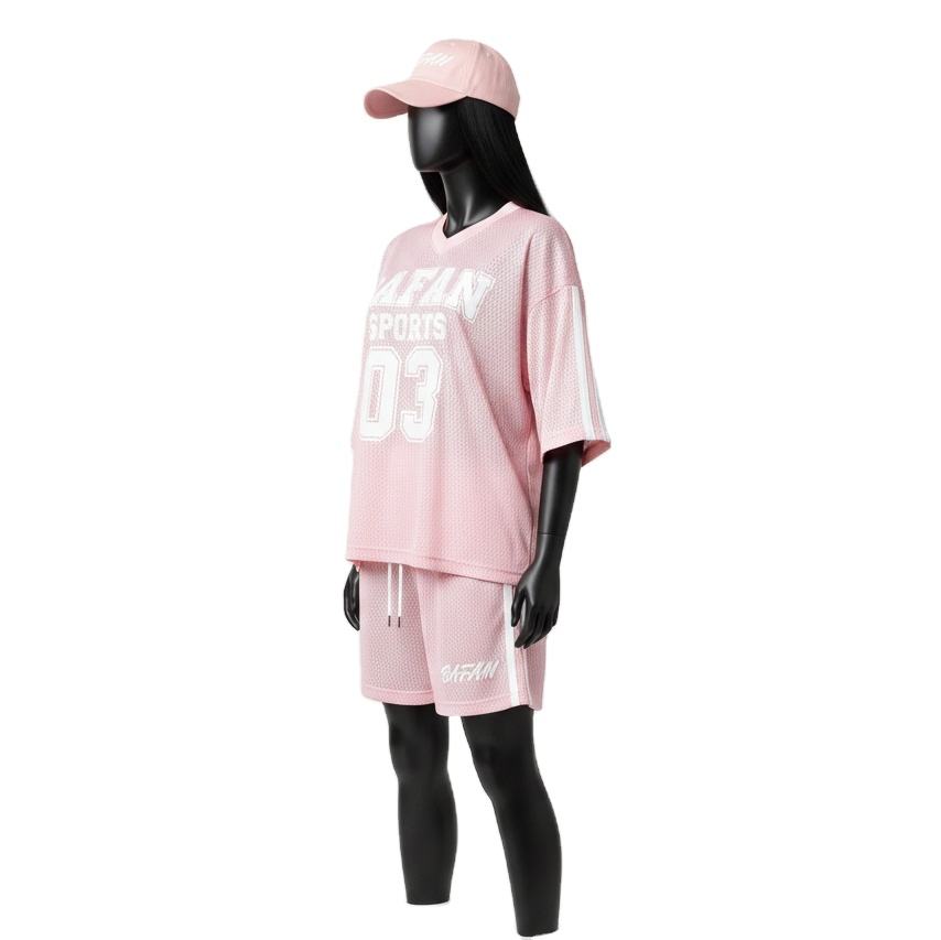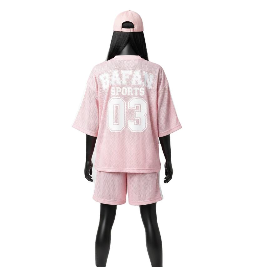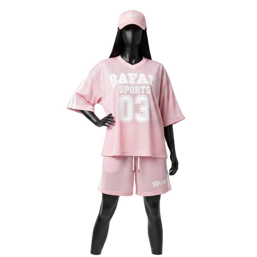 ชุดเซ็ตผู้หญิงผ้าโพลีเอสเตอร์ตาข่ายพรีเมียม 180 GSM น้ำหนักเบา ระบายอากาศได้ดี สกรีนโลโก้ตามสั่ง ชุดผู้หญิงผ้าฝ้าย 100%