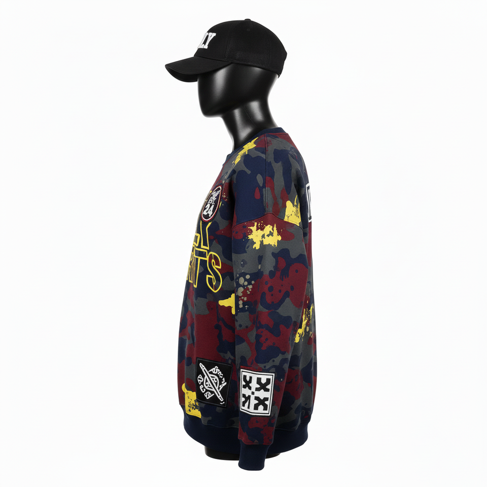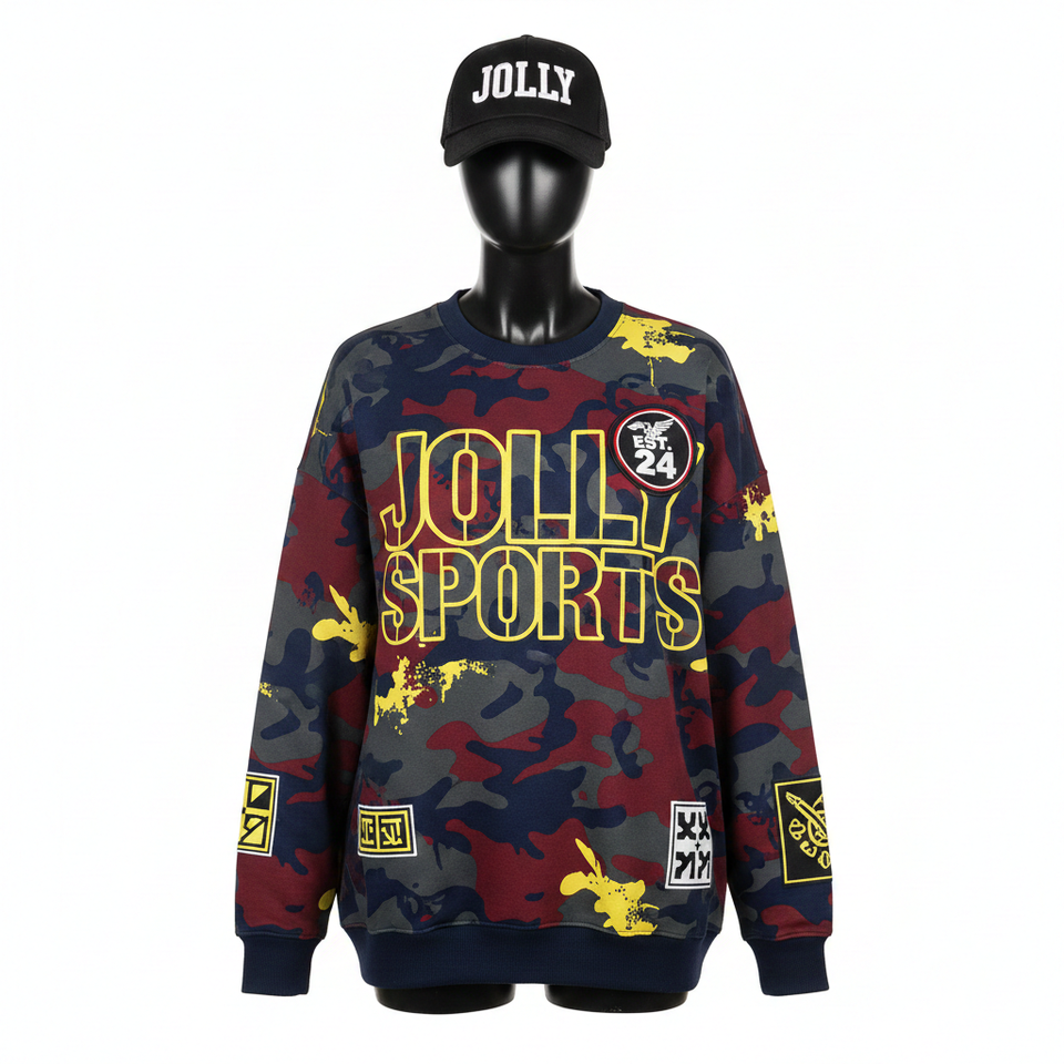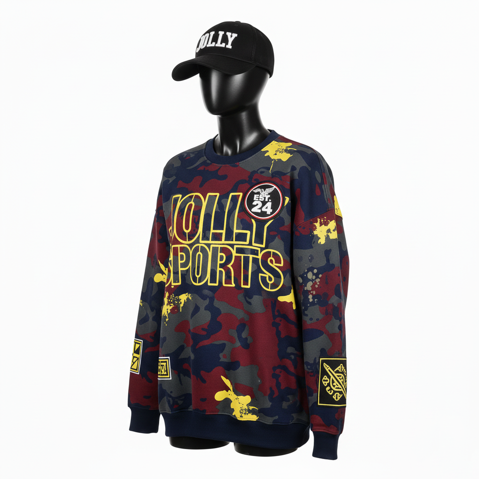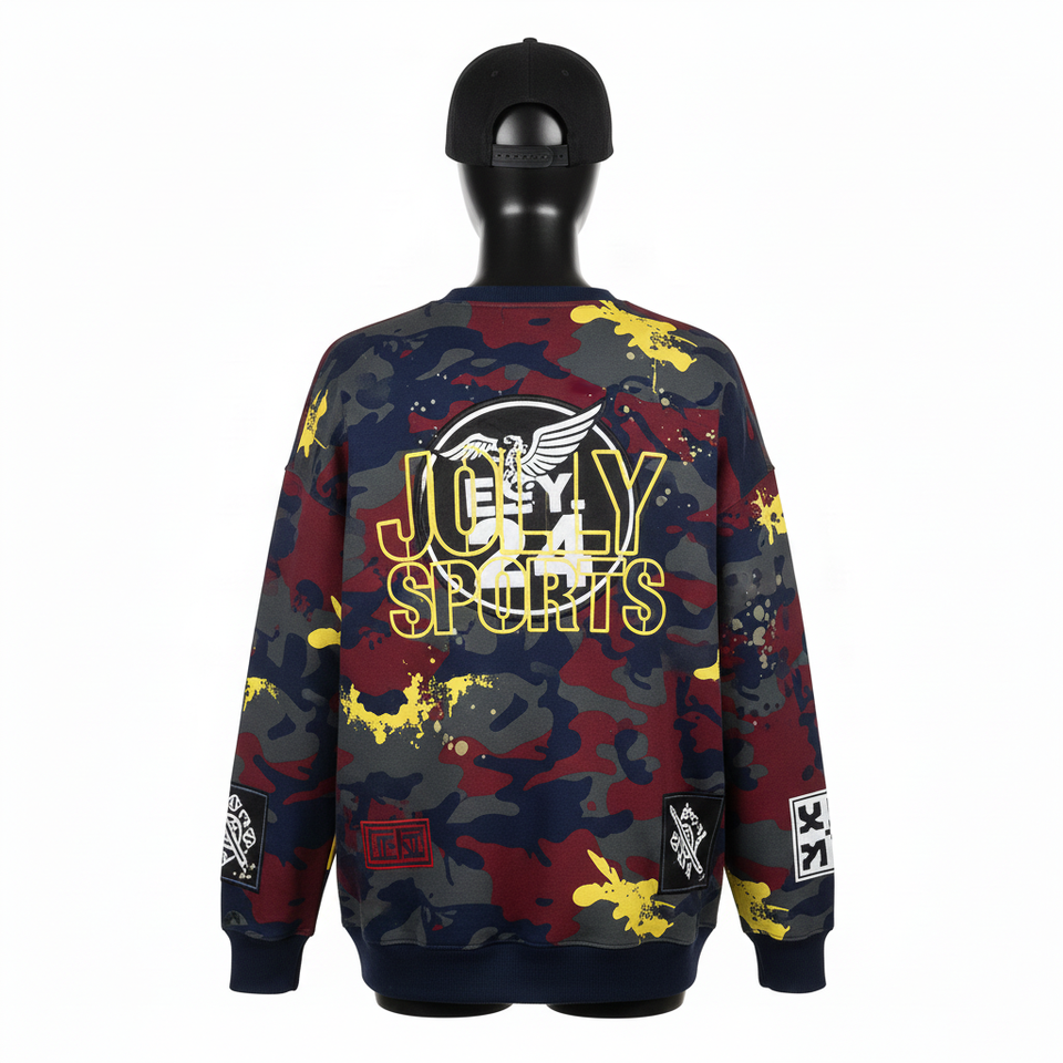 เสื้อสเวตเชิ้ตผู้หญิงแบบพรีเมียม ผ้าโพลีเอสเตอร์ฟลีซเนื้อเรียบ 280 GSM พิมพ์ลายพรางทั่วตัว พร้อมโลโก้สั่งทำพิเศษ เสื้อสเวตเชิ้ตผู้หญิงแบบซับลิเมชั่น
