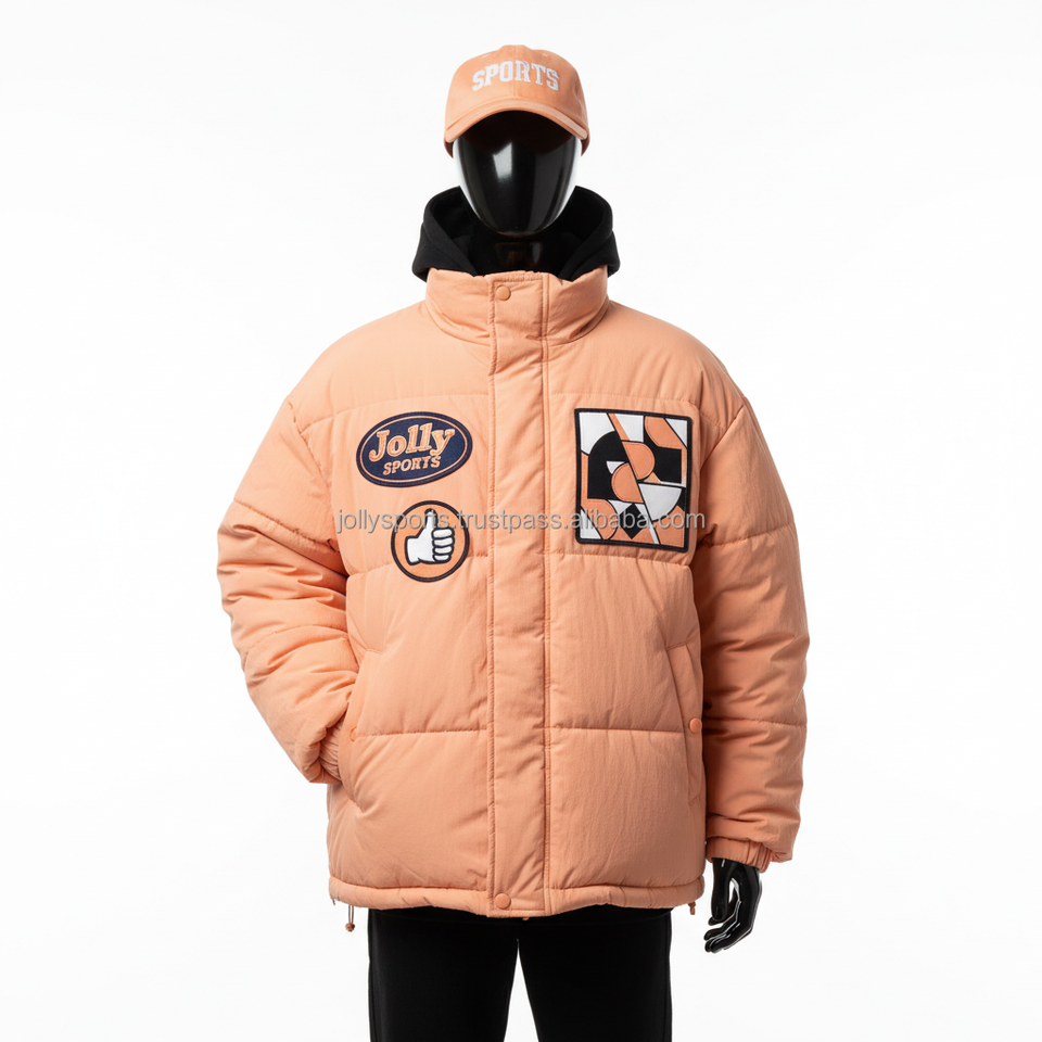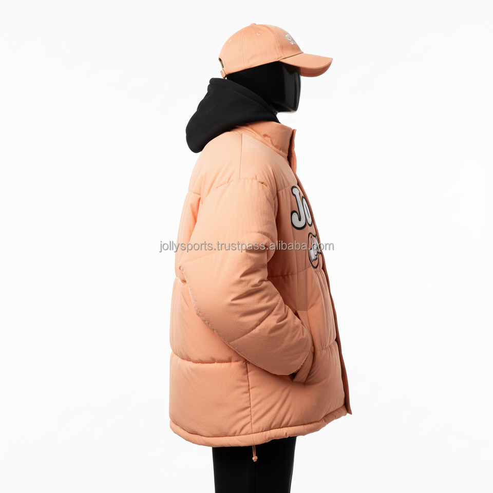 แจ็กเก็ตแบบหนาสำหรับผู้หญิงแจ็กเก็ตแบบหนาทรงหนาสีส้มผ้าควิลท์โพลีเอสเตอร์ GSM ปักโลโก้ได้ตามต้องการ