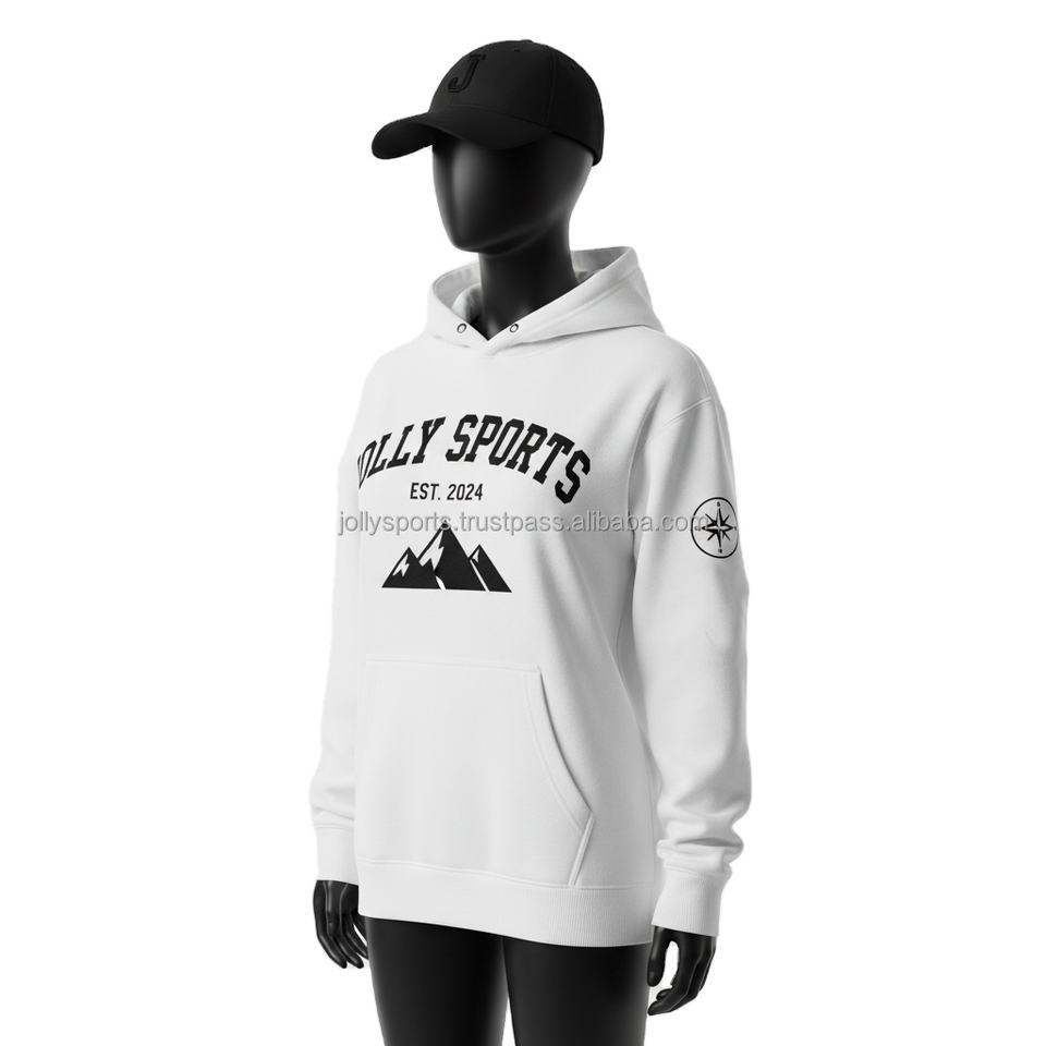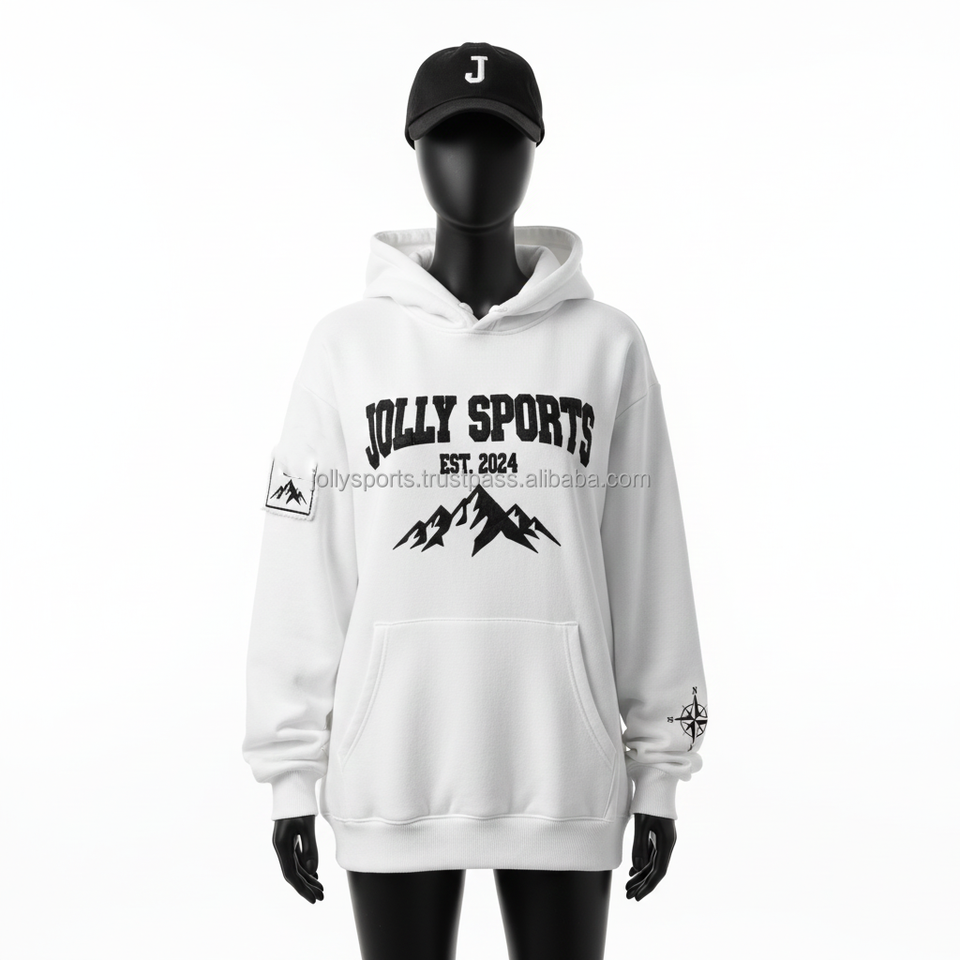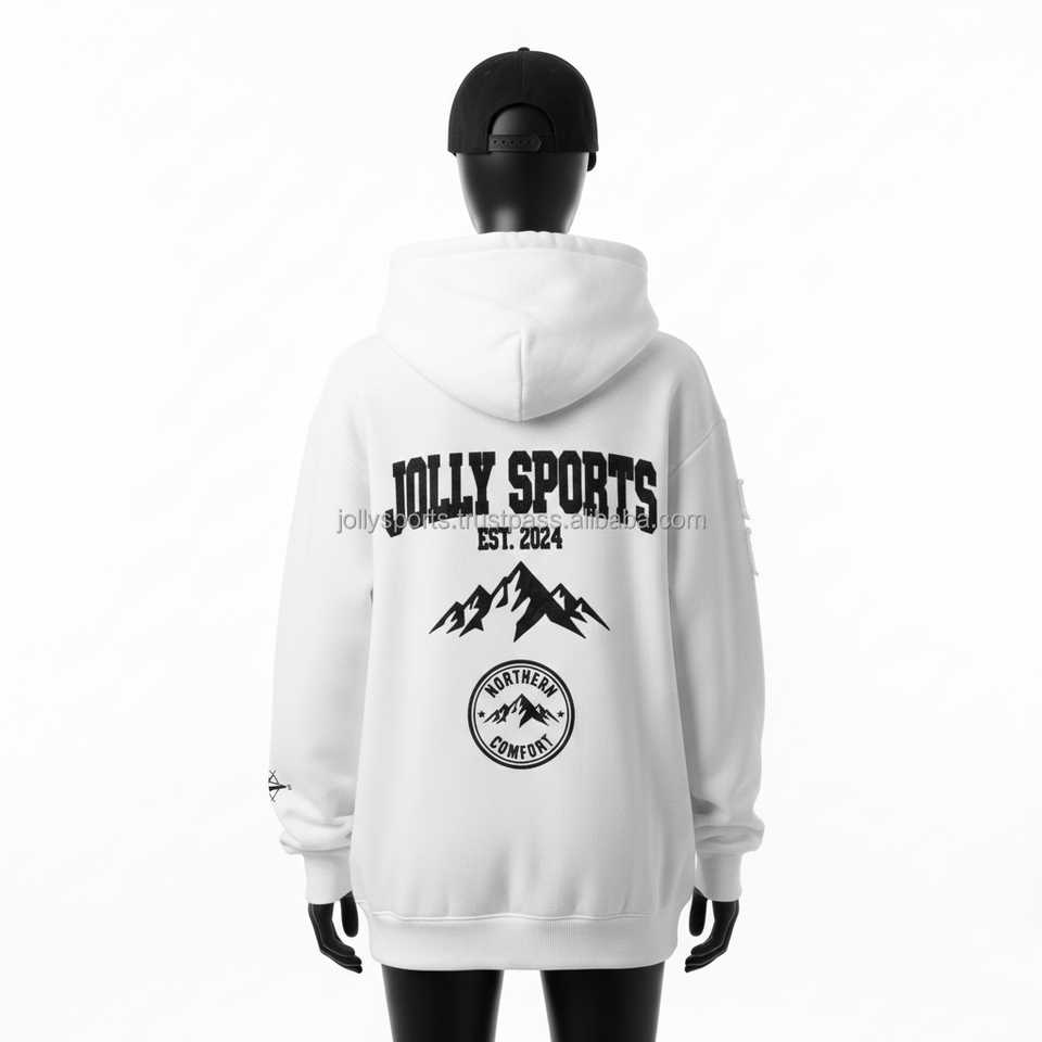 เสื้อฮู้ดผู้หญิง ผ้าฝ้ายฟลีซเนื้อนุ่ม 320GSM สีขาว ปักโลโก้ตามสั่ง ทรงพอดีตัว สไตล์ลำลอง สตรีทแวร์ เสื้อฮู้ดผู้หญิงแบบพื้นฐาน