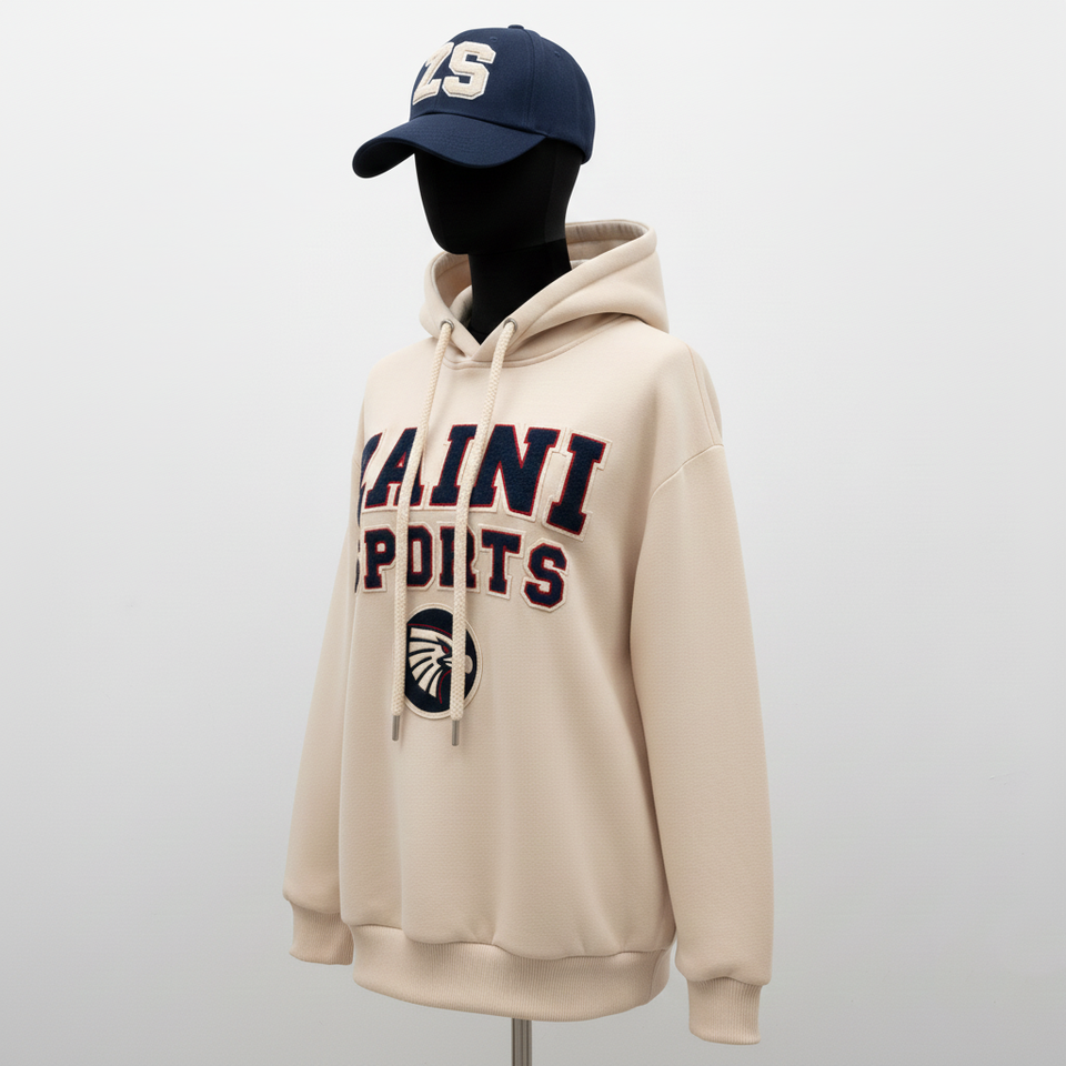เสื้อฮู้ดผู้หญิง ผ้าฝ้าย GSM ผ้าฟลีซเนื้อนุ่ม สีเบจ ปักโลโก้ด้วยไหมเชนิลล์ตามสั่ง เสื้อฮู้ดพื้นฐานสำหรับผู้หญิง