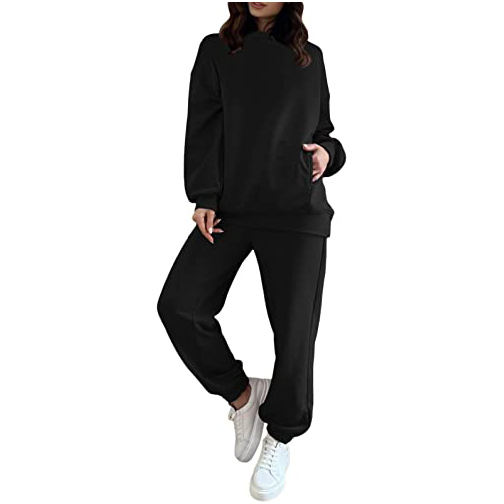 ชุดวอร์มผู้หญิงสำหรับฤดูหนาว ปักลายสวยงาม เสื้อฮู้ดและกางเกงจ็อกเกอร์ผ้าฟลีซ อุ่นสบาย เหมาะสำหรับออกกำลังกาย เล่นกีฬา ชุดออกกำลังกายสองชิ้น