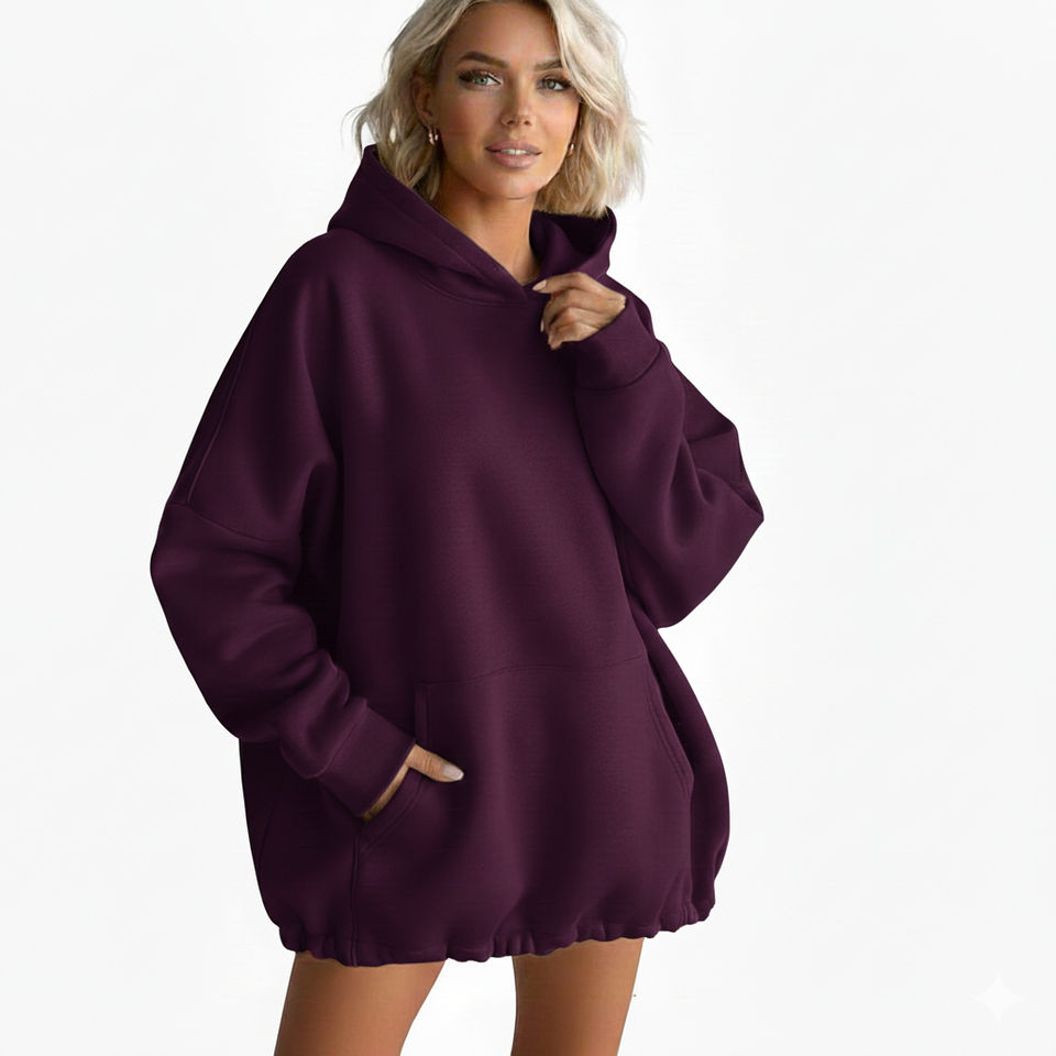 เสื้อฮู้ดโอเวอร์ไซส์สำหรับผู้หญิง เสื้อกันหนาวผ้าฟลีซเนื้อนุ่ม สวมใส่สบาย ทรงหลวม แฟชั่นลำลองสำหรับฤดูหนาว สไตล์สตรีทแวร์
