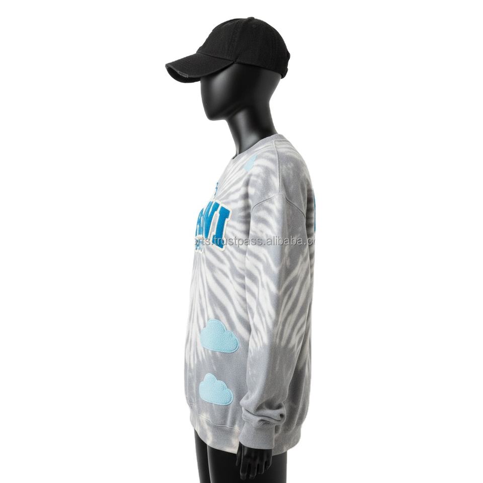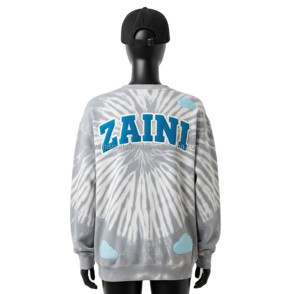 เสื้อสเวตเชิ้ตผู้หญิง ผ้าฝ้ายฟลีซ 320GSM ลายมัดย้อมสีเทา ปักโลโก้เชนิลล์แบบกำหนดเอง สวมใส่สบาย ระบายอากาศได้ดี