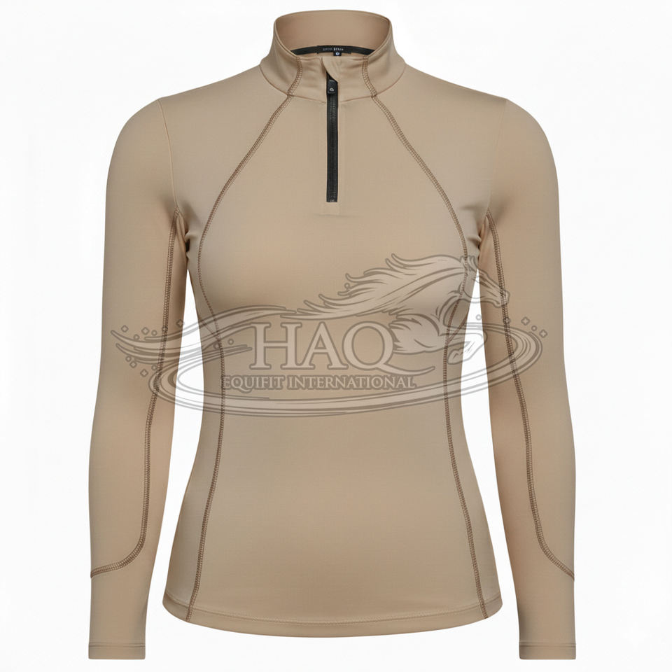 เสื้อขี่ม้าผู้หญิงแบบซิป ¼ ตัว แขนยาว ระบายอากาศได้ดี เหมาะสำหรับการแข่งขัน สามารถสั่งทำได้
