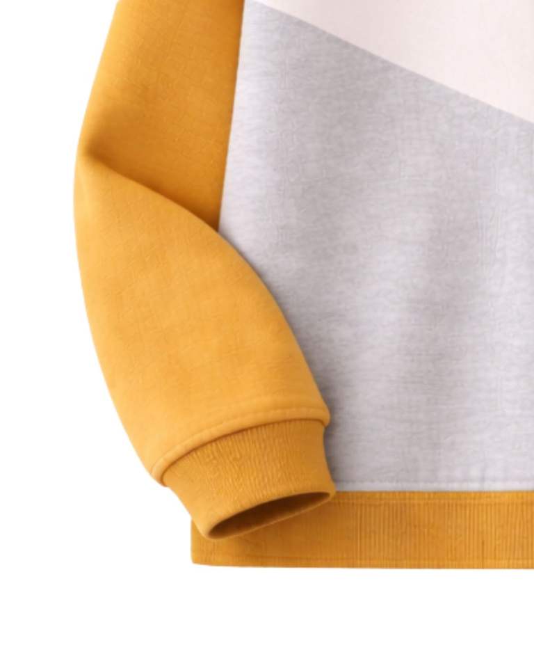 เสื้อสเวตเชิ้ตผู้หญิงแบบซิป ¼ ตัว สีมัสตาร์ด เหลือง ขาว เทา คัลเลอร์บล็อก ผ้าฟลีซ สวมหัว สไตล์ลำลอง อุ่นสบายสำหรับฤดูหนาว สตรีทแวร์ ทรงโอเวอร์ไซส์