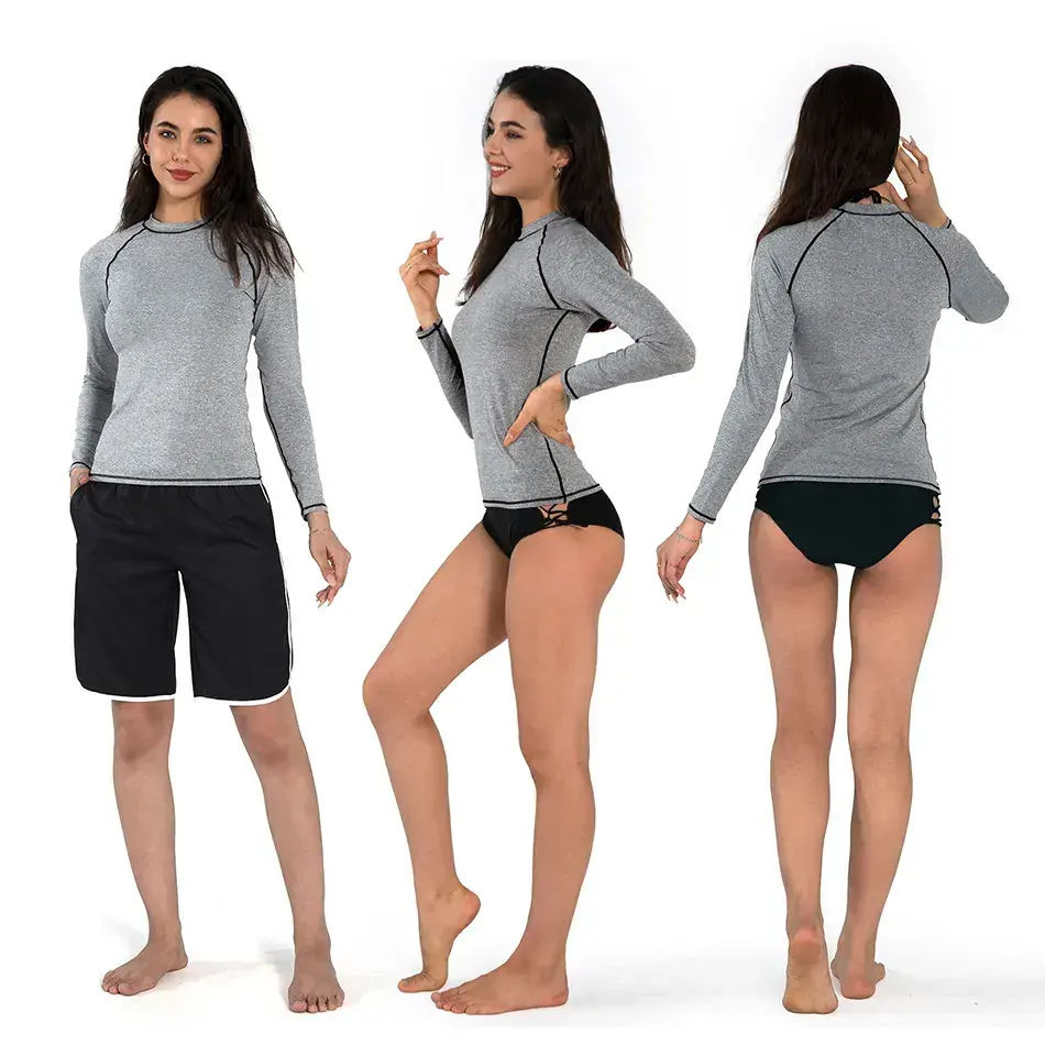 เสื้อรัดรูปผู้หญิงแบบแห้งเร็วระบายอากาศได้ดีสำหรับฟิตเนสวิ่งและเล่นกีฬา