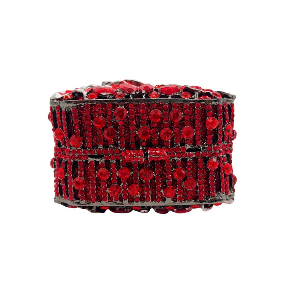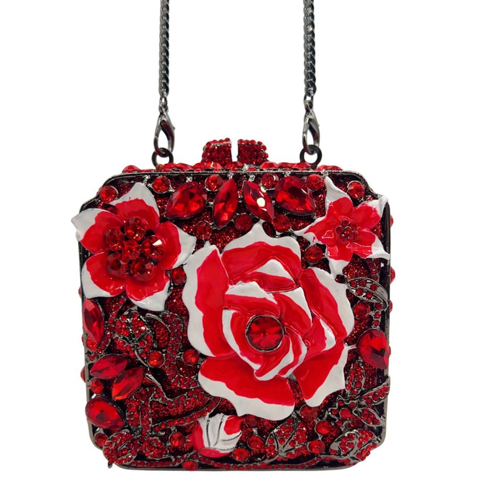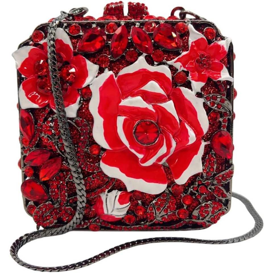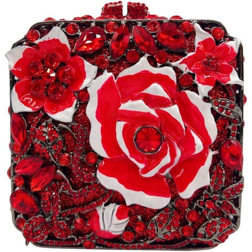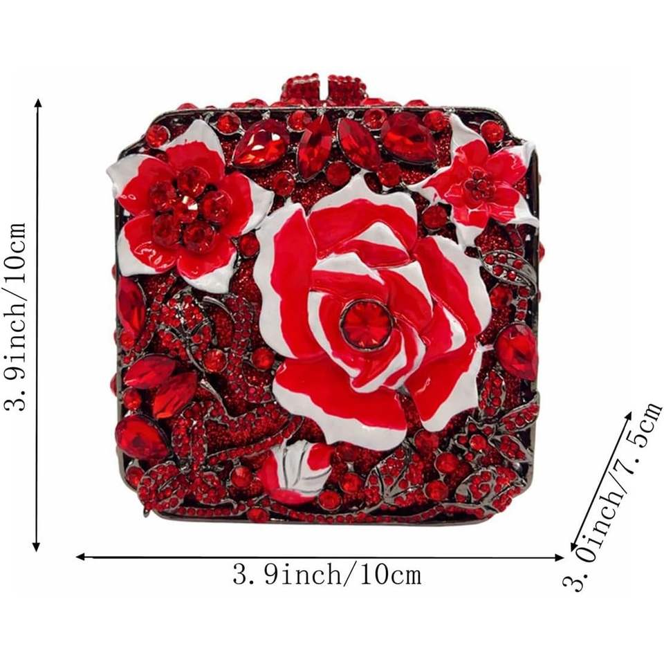 กระเป๋าคลัทช์ผู้หญิงประดับเพชร กระเป๋าทรงสี่เหลี่ยมสำหรับงานกลางคืน ซับในผ้าซาติน หนังไมโครไฟเบอร์สังเคราะห์ สีแดง