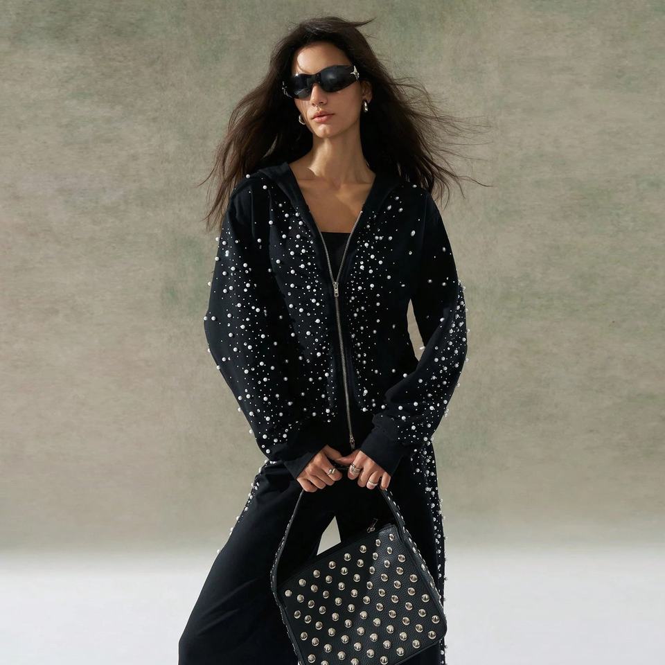 เสื้อสเวตเตอร์มีฮู้ดแบบมีซิปด้านหน้าสำหรับผู้หญิงเสื้อผ้าแนวสตรีทแฟชั่นสำหรับฤดูหนาวโลโก้ที่กำหนดเอง