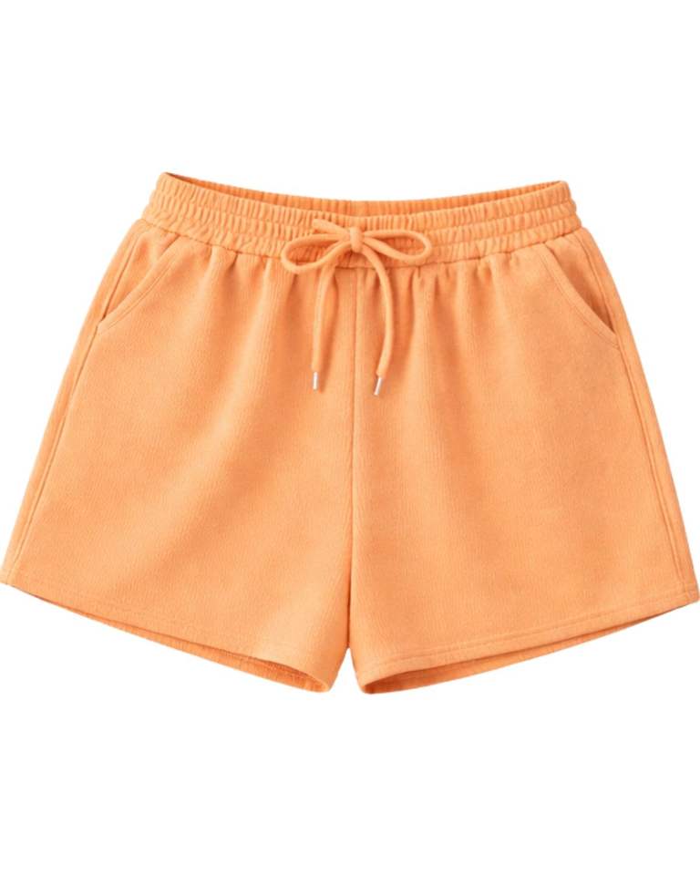 Women Ribbed Crop Tank Top And Drawstring Shorts Set Peach Orange Solid Color Casual Lounge Two Piece Outfit Manufacturer OEM