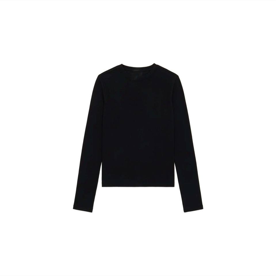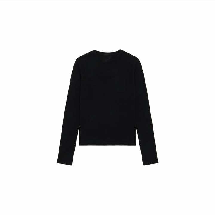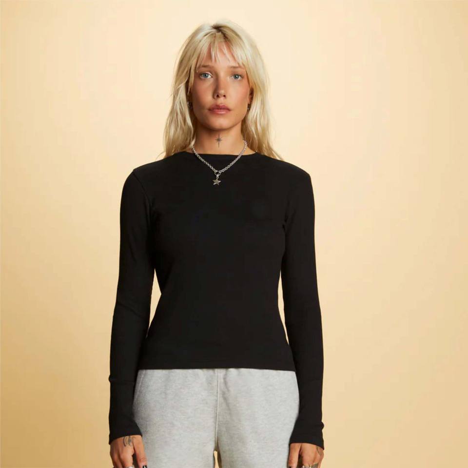 เสื้อยืดแขนยาวสีดำพอดีตัวสำหรับผู้หญิงเสื้อยืดผ้าที่มีน้ำหนักเบาและผ้ายืดเหมาะสำหรับสวมใส่สบายๆและสำนักงาน