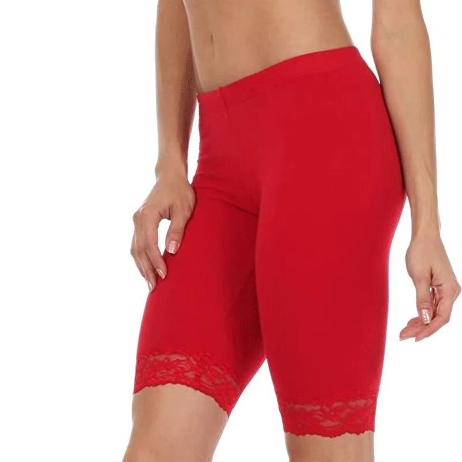 กางเกงขาสั้นเอวสูงผ้าริบเนื้อนุ่มสีแดงสำหรับผู้หญิง กางเกงโยคะ แห้งเร็ว เซ็กซี่ เหมาะสำหรับออกกำลังกาย ฟิตเนส และยิม
