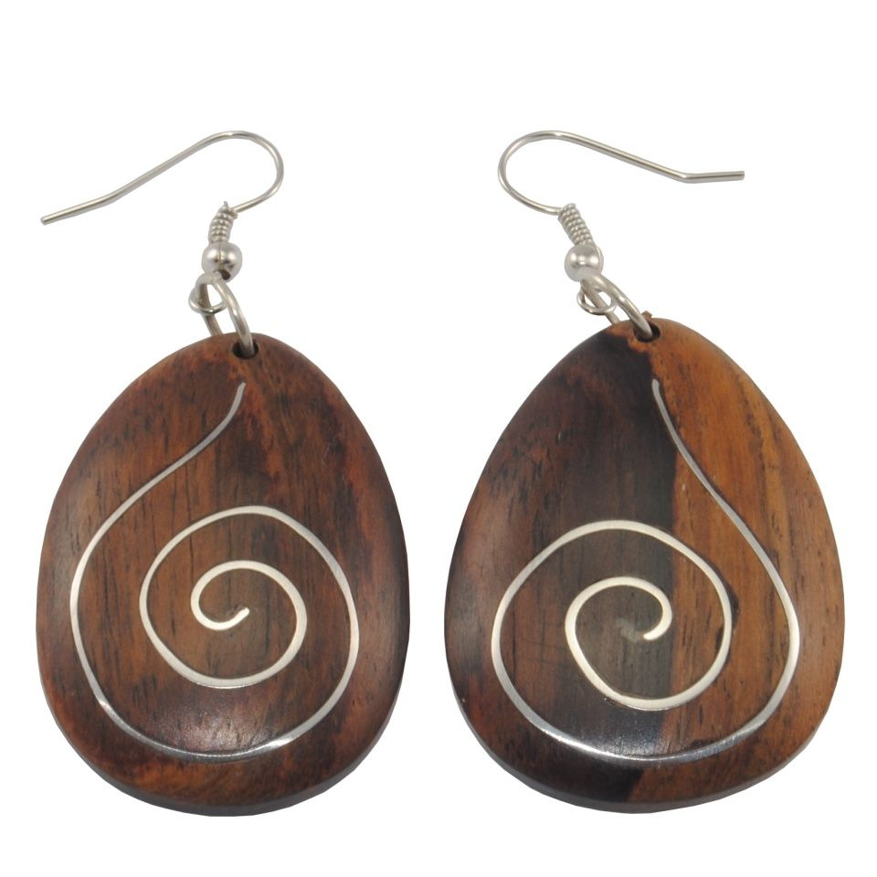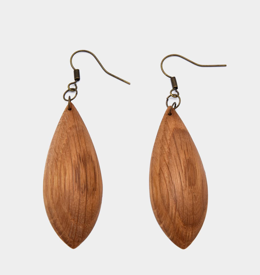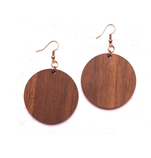 ต่างหูไม้ทรงกลมสำหรับผู้หญิงต่างหูระย้ารูปใบไม้ลายทางแบบวินเทจทำมือ